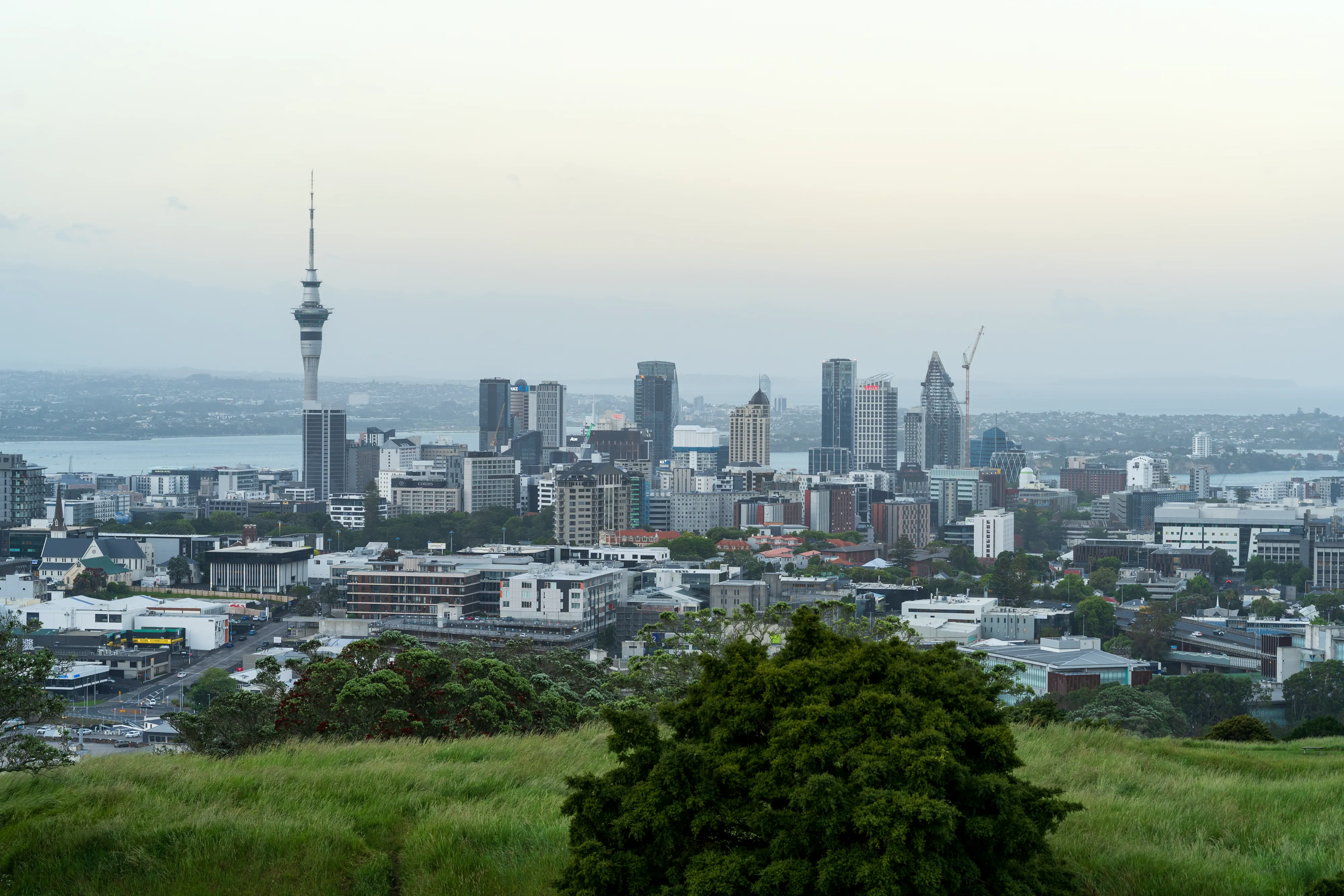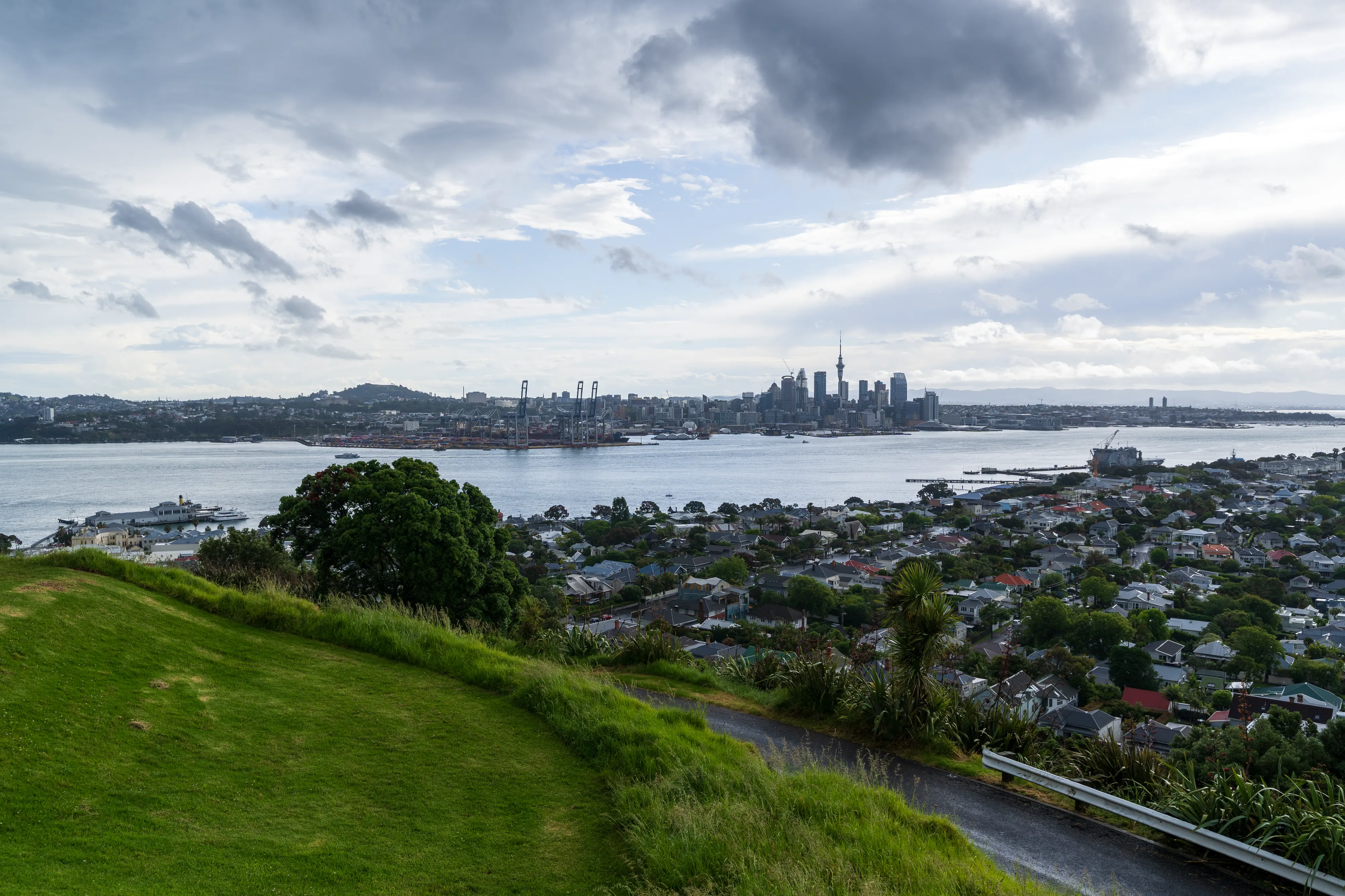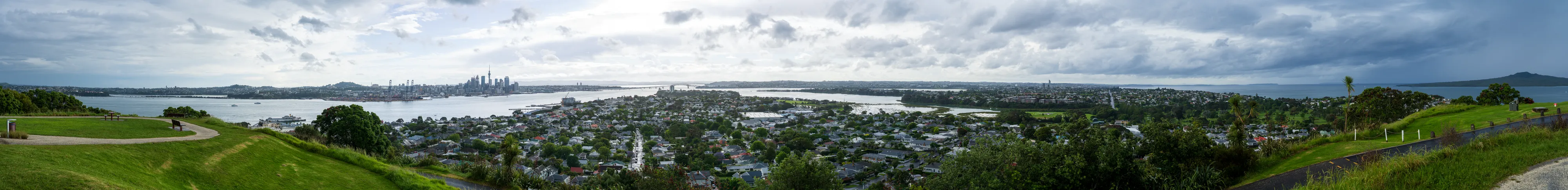 Zum Glück immer noch trocken, erreichen wir schließlich wieder den Hafen und nehmen eine Fähre nach Devonport, welches auf der anderen Seite der Bucht liegt. Hier fängt es jedoch wieder zu regnen an, was erneut zu einer Zwangspause führt - diesmal im Fährterminal. Nachdem das Gewitter weitergezogen ist, spazieren wir auf den nahegelegenen Mt. Victoria (Takarunga), um einen Blick auf die Skyline Aucklands zu bekommen. Nett, allerdings kein Vergleich mit Sydney oder Melbourne (welche allerdings auch drei- bis viermal so viele Einwohner zählen).