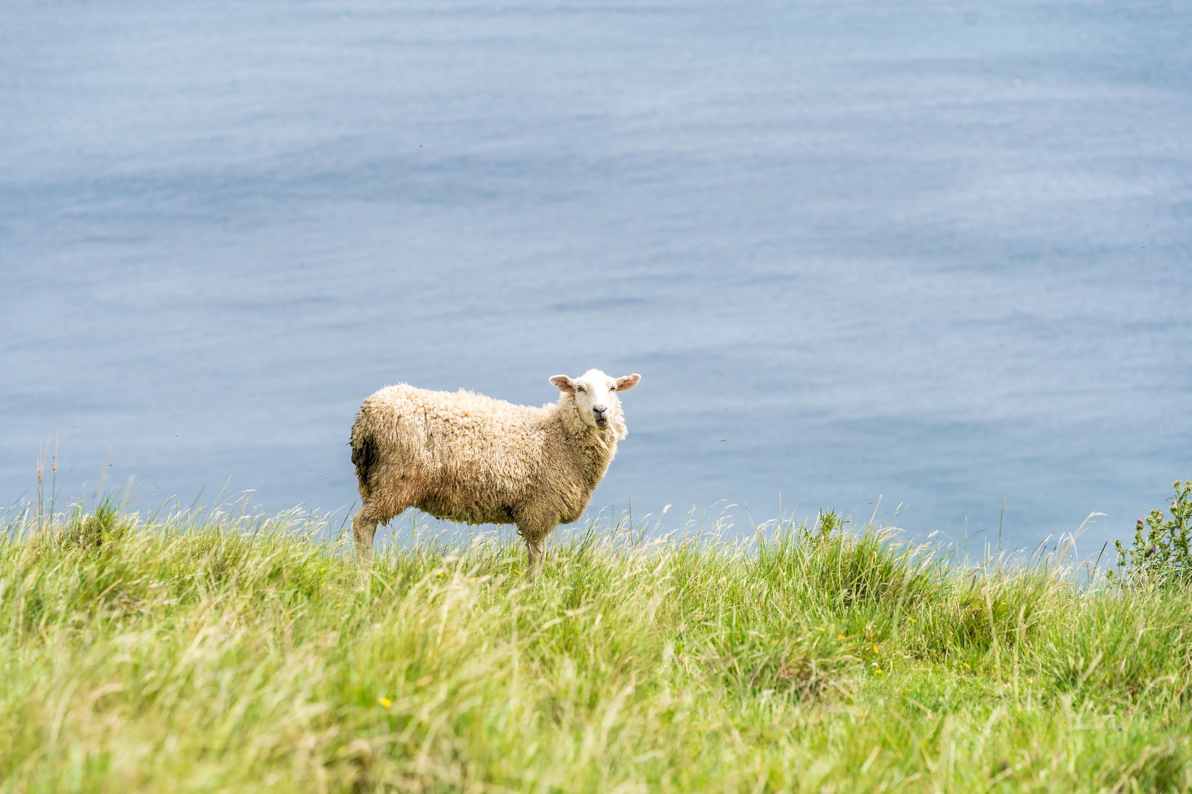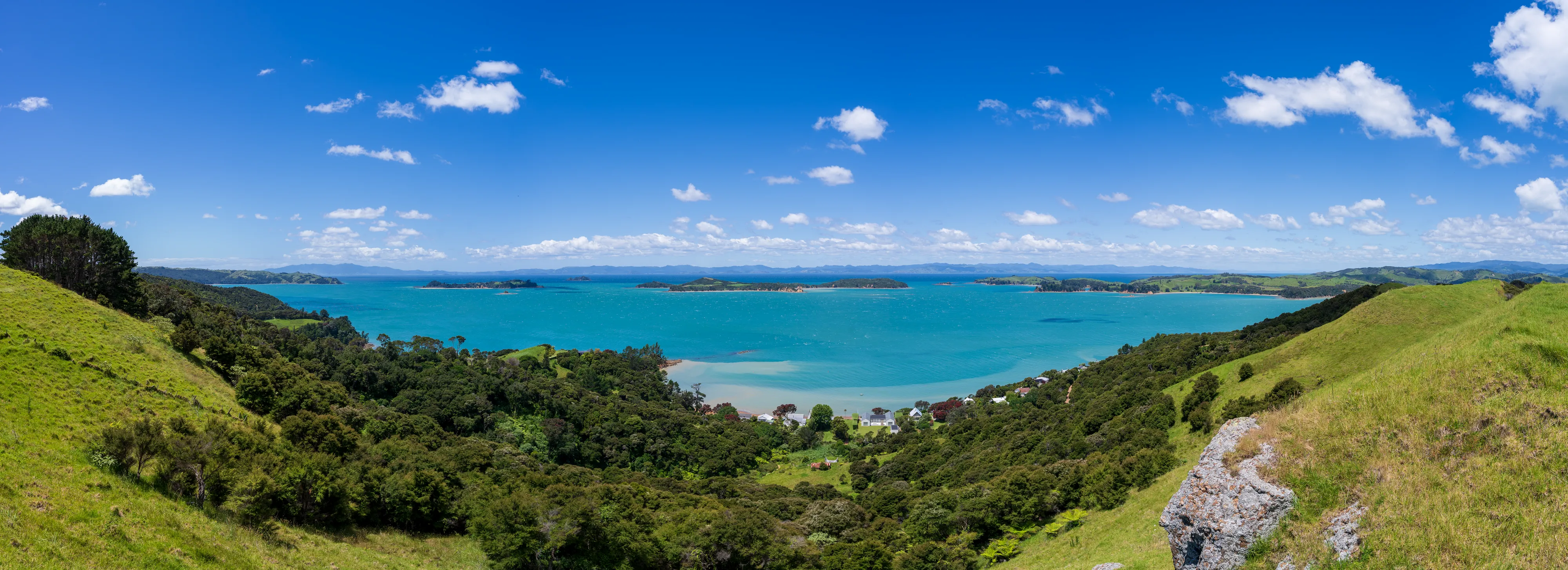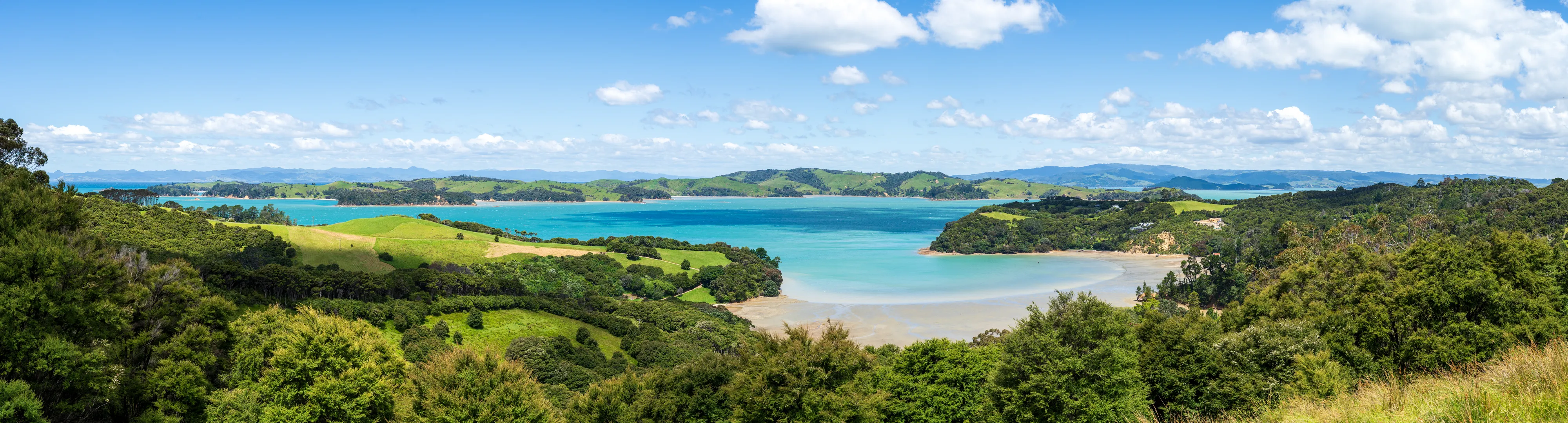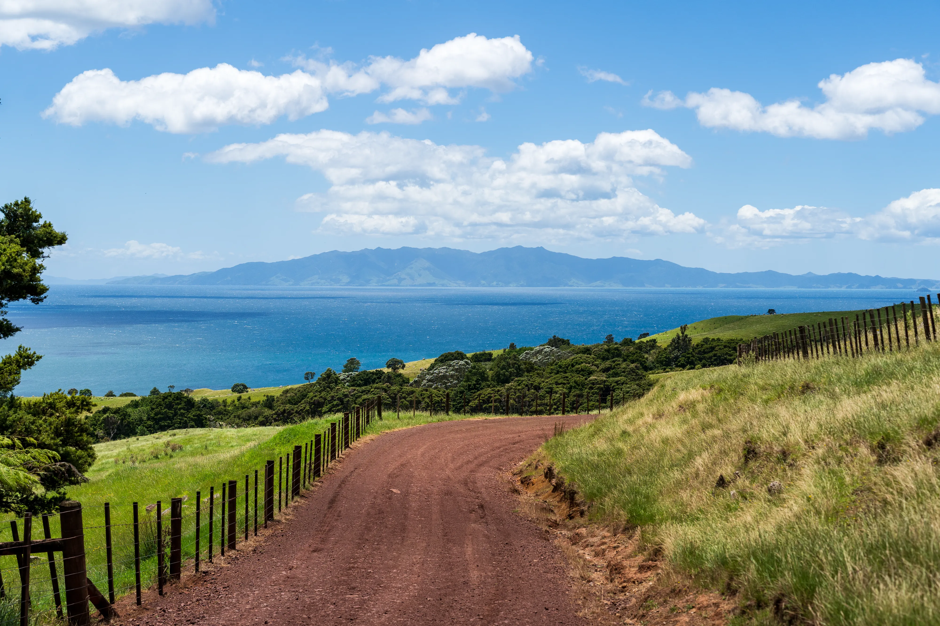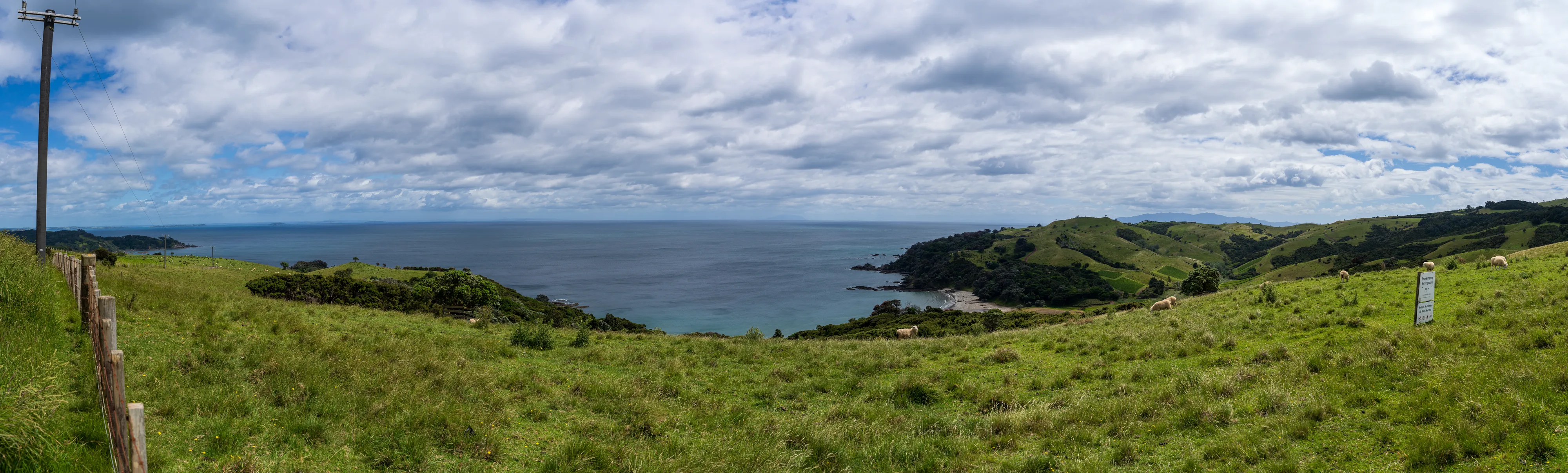 Nun fahren wir die Ostküste entlang der Man o’War Bay und Cowes Bay hinab, bis wir zur Südküste kommen. Auch hier finden sich schöne grüne Hügellandschaften mit Schafen und dem Meer im Hintergrund - wirklich ein herrlicher Ausblick!