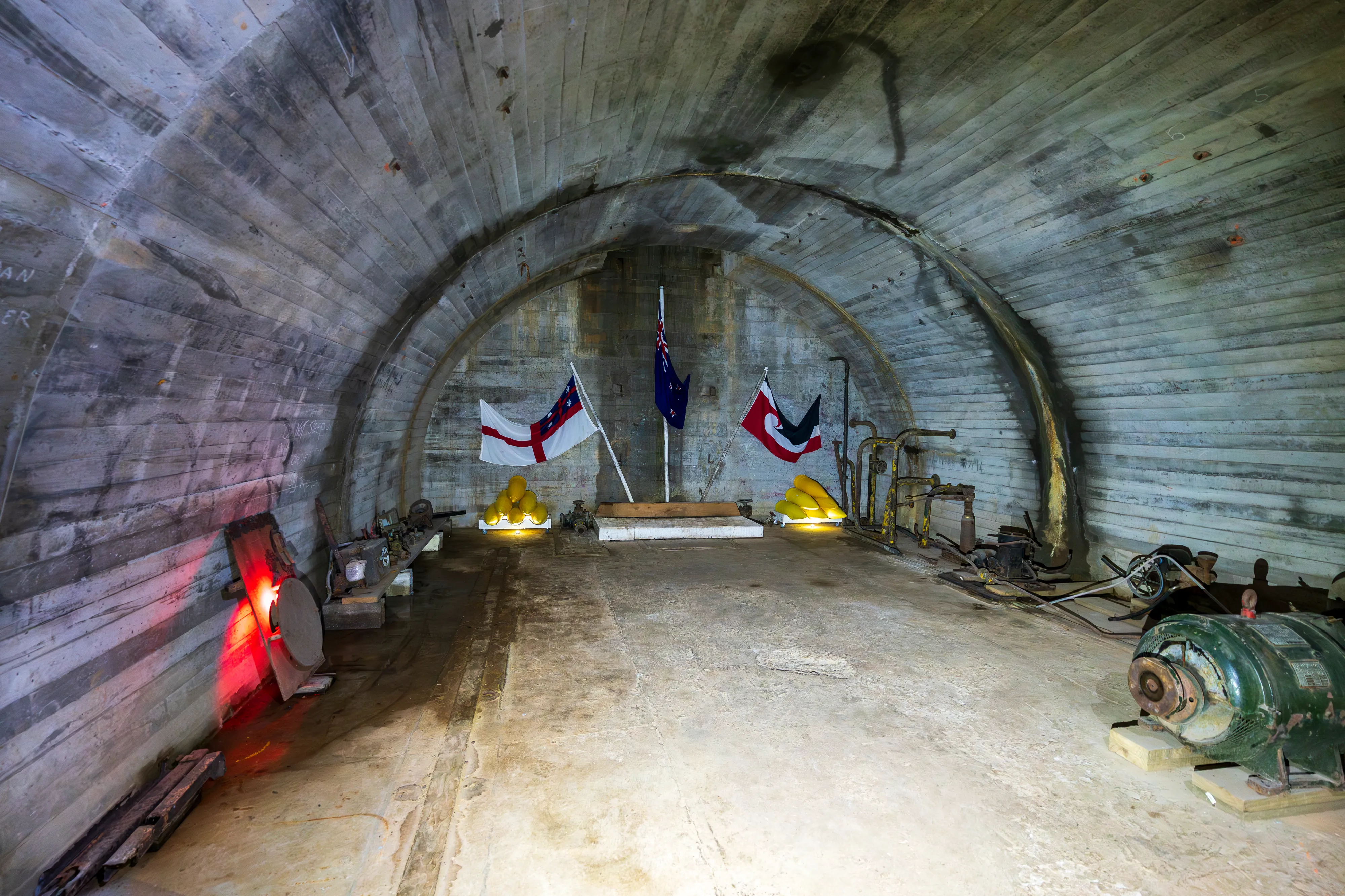 Im Nordosten der Insel erreichen wir das Stony Batter Historic Reserve. Hierbei handelt es sich um die Überreste einer historischen Verteidigungsanlage aus dem 2. Weltkrieg, die gleichzeitig auch die größte Bunkeranlage Neuseelands ist. Wir machen eine Führung durch die Tunnel und unterirdischen Gänge der Anlage, welches Gebaut wurde, um die Gewässer vor Auckland vor japanischen Angriffen zu schützen - allerdings kamen deren Schiffe nicht so weit südlich und so wurden die schweren Geschütze nie gebraucht. Heute dient die ehemals militärische Anlage einerseits als Touristenattraktion, andererseits aber auch als Ausstellungs- und Veranstaltungsort für Kunst und Kultur.