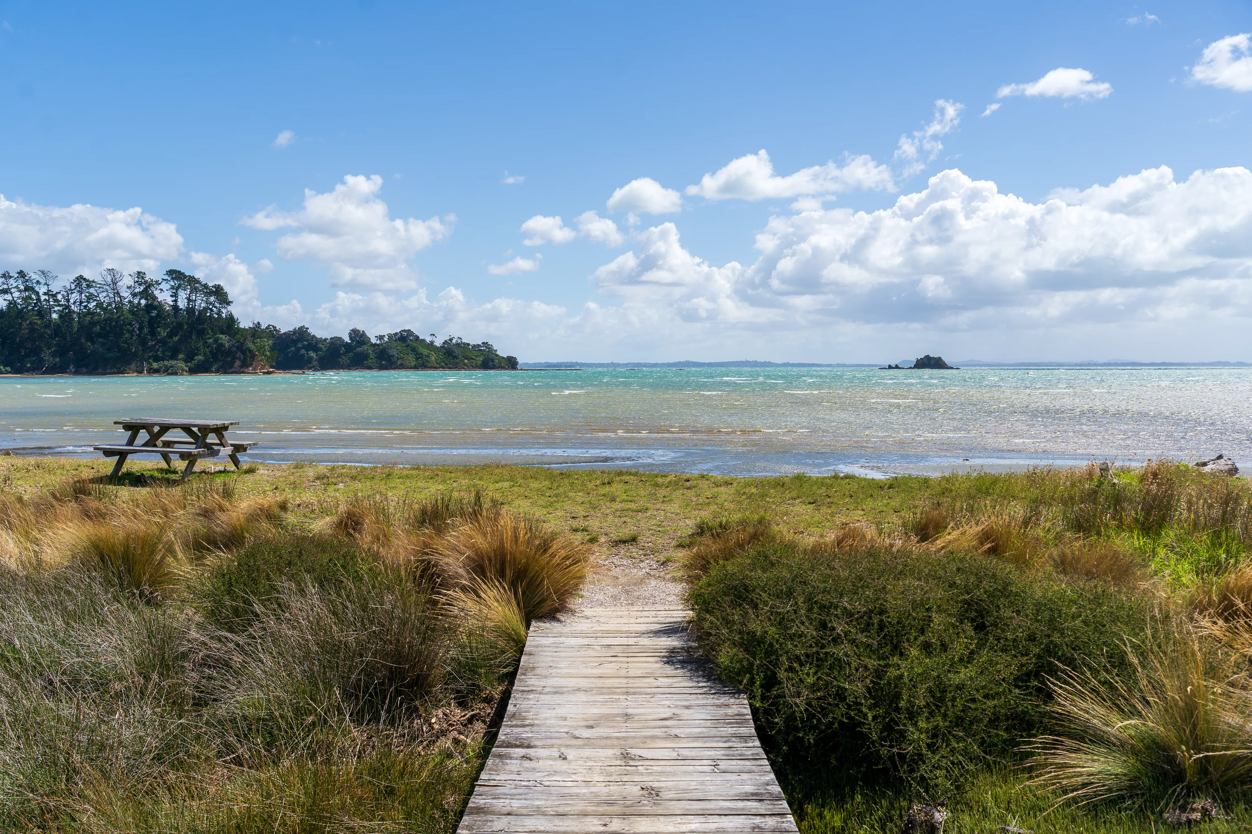 Auf unserem Rückweg zur Fähre halten wir noch beim gänzlich unspektakulären Whakanewha Regional Park und stärken uns in einem Café.
