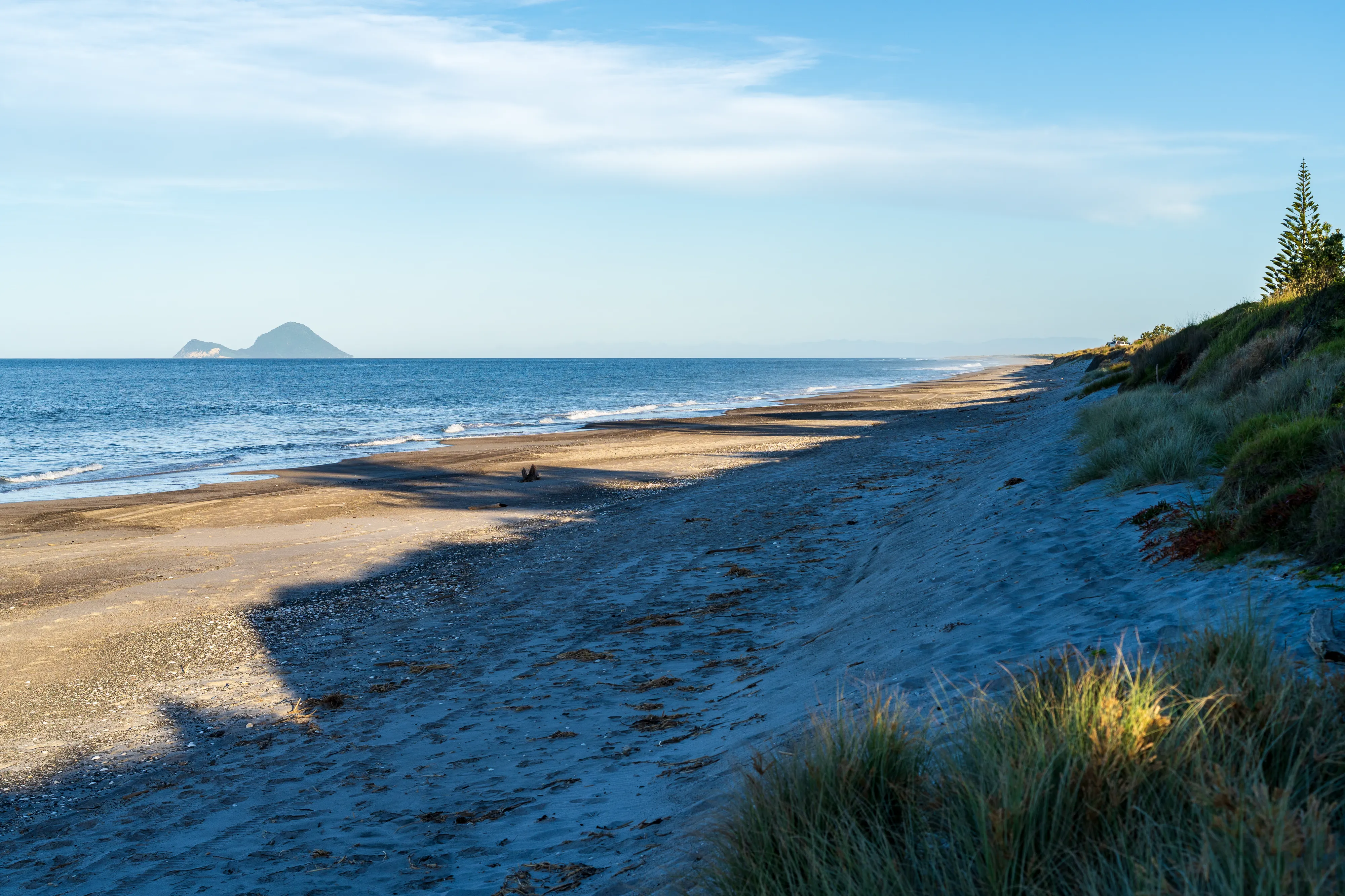 Abends übernachten wir etwas weiter südlich am Meer auf dem Matatā Campground. Leider ist das Wasser hier sehr aufgewühlt und dadurch nicht so wunderbar klar, wie an den Stränden, die wir mittags vom Gipfel des Mount Maunganui aus gesehen haben - allerdings entschädigt die Vielzahl gut erhaltener, farbenprächtiger (Jakobs)Muscheln dafür.