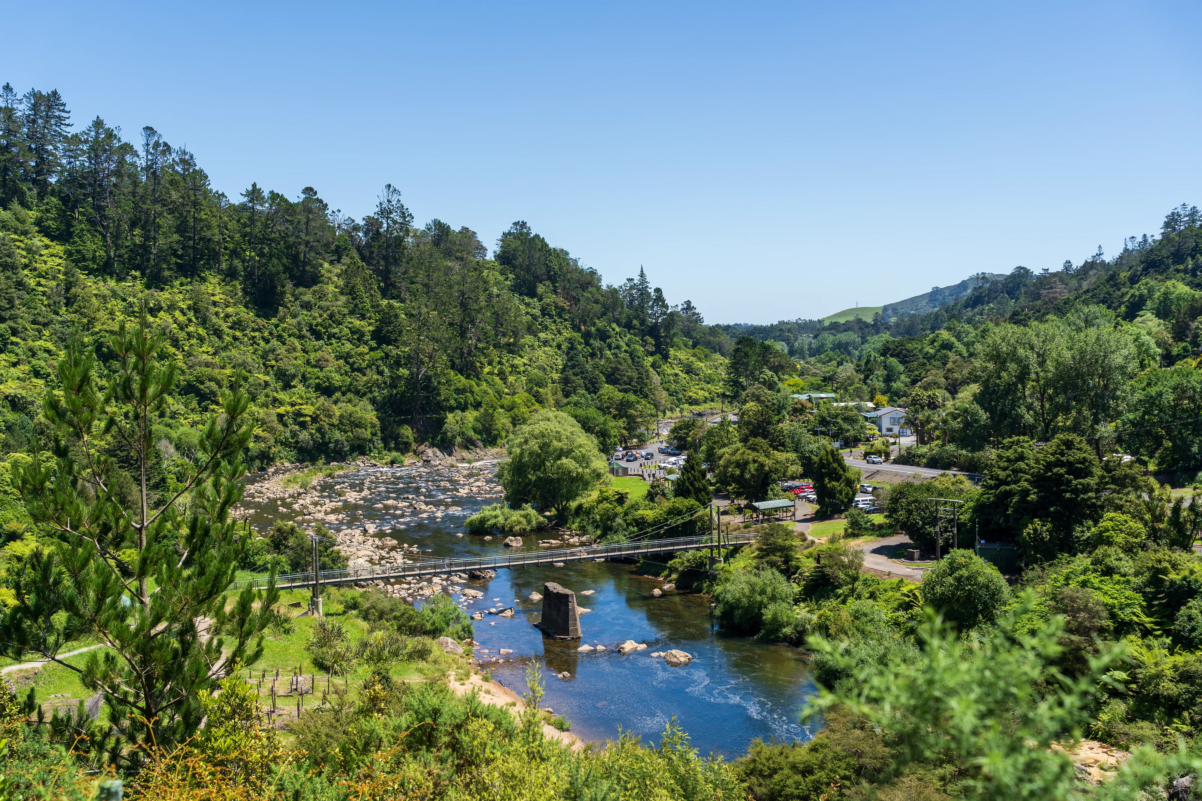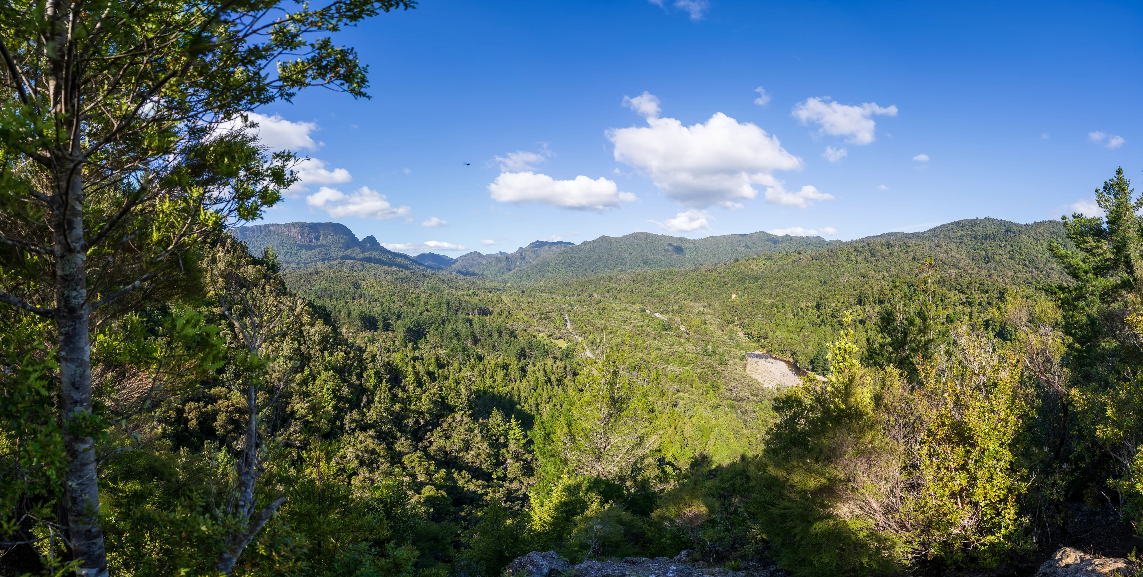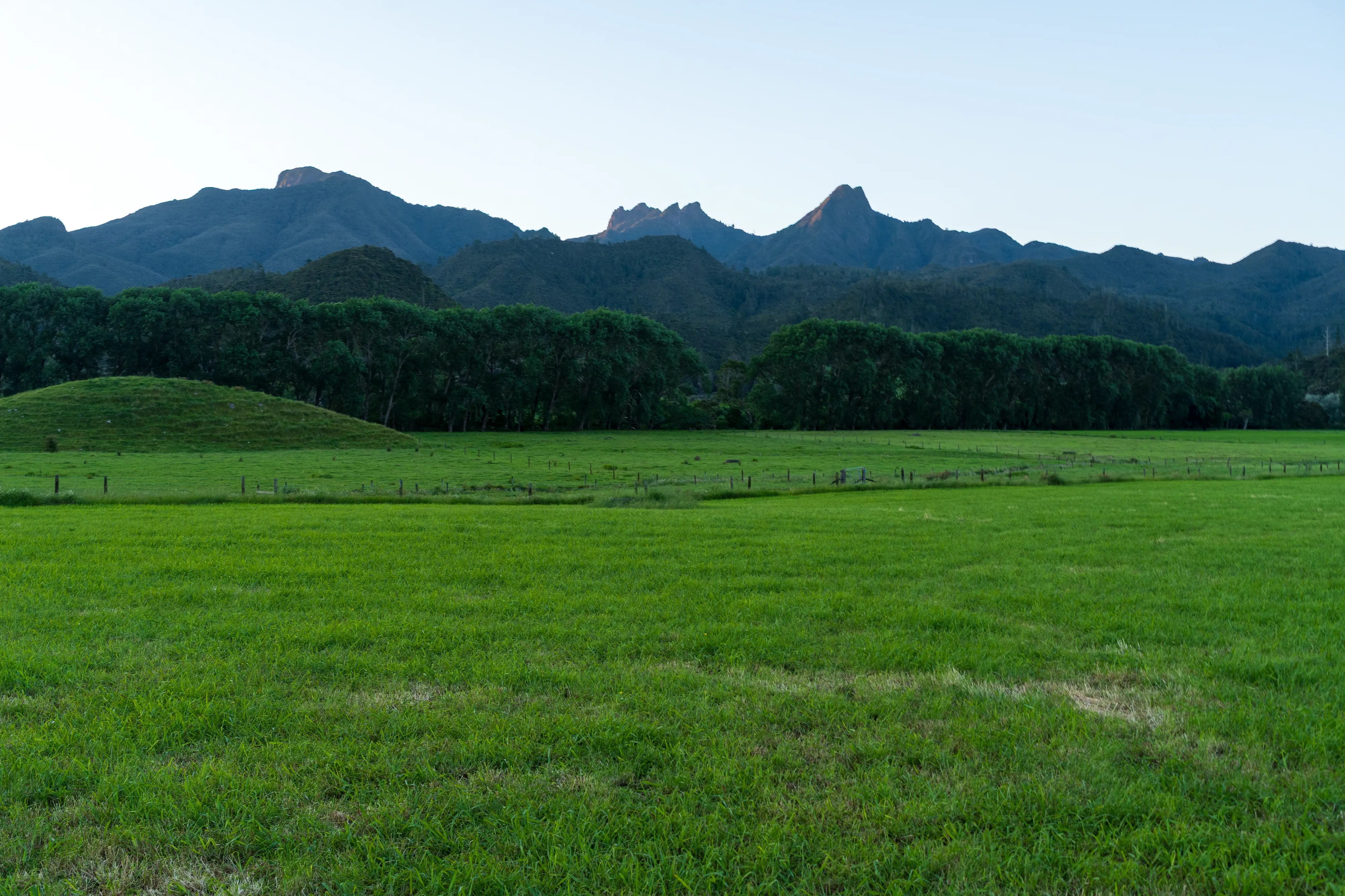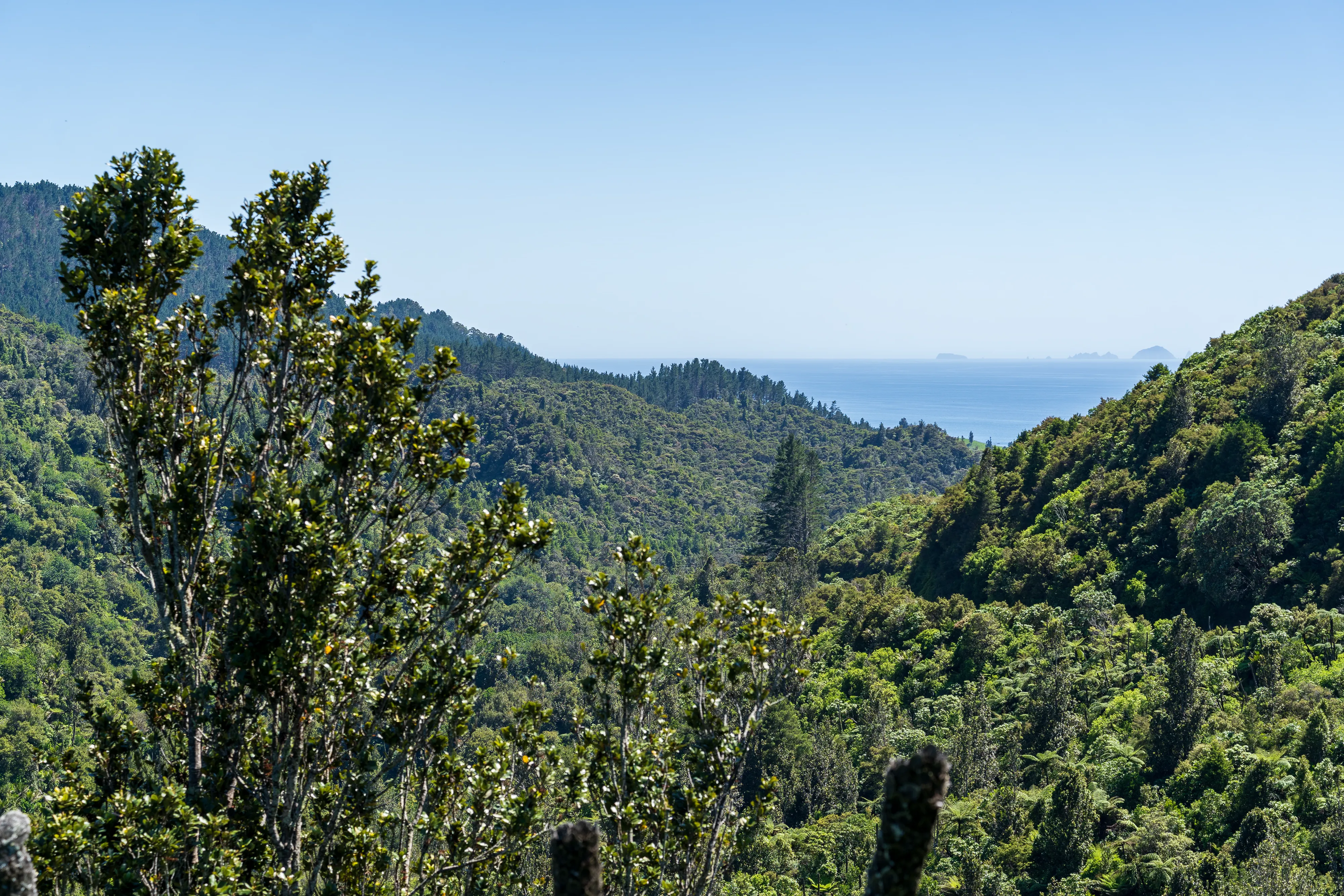 Wir erreichen die Halbinsel am frühen Abend und fahren durch Thames in das Kauearanga Valley im Coromandel Forest Park. Dort steigen wir kurz auf zum Edwards Lookout, um einen Ausblick ins Tal und auf den Table Mountain zu bekommen.