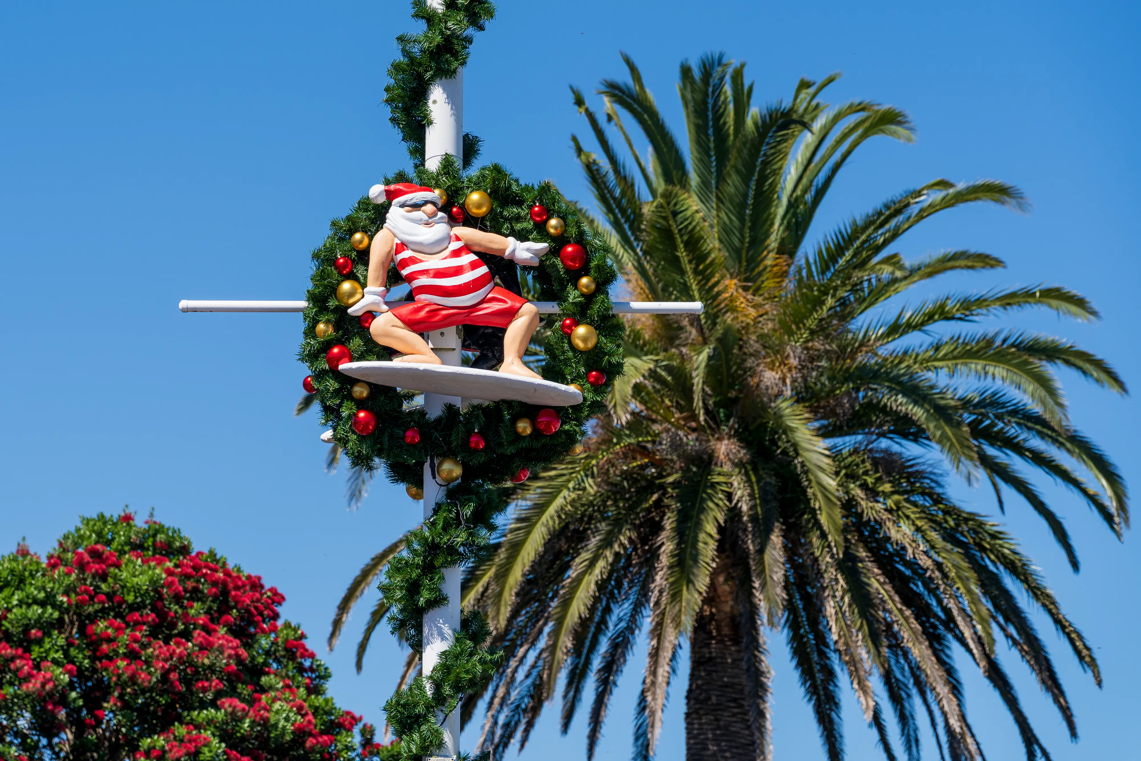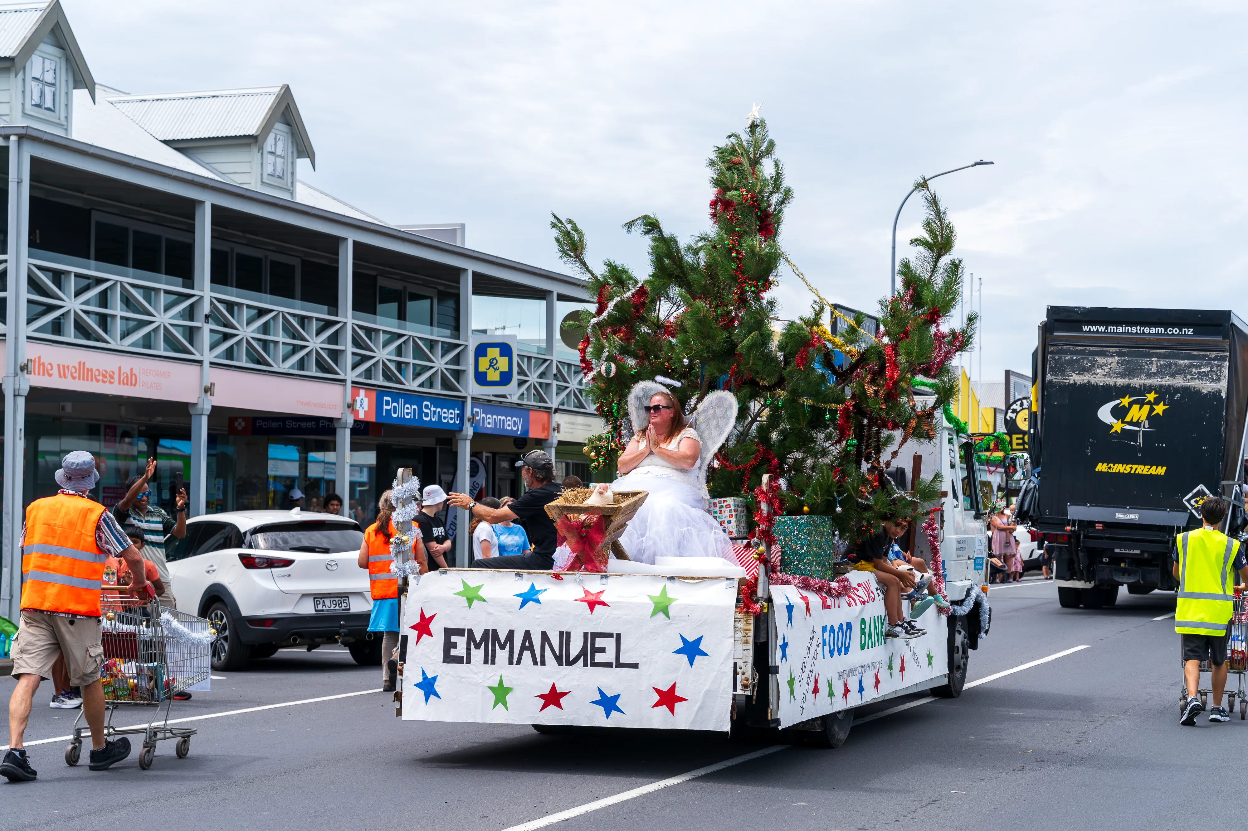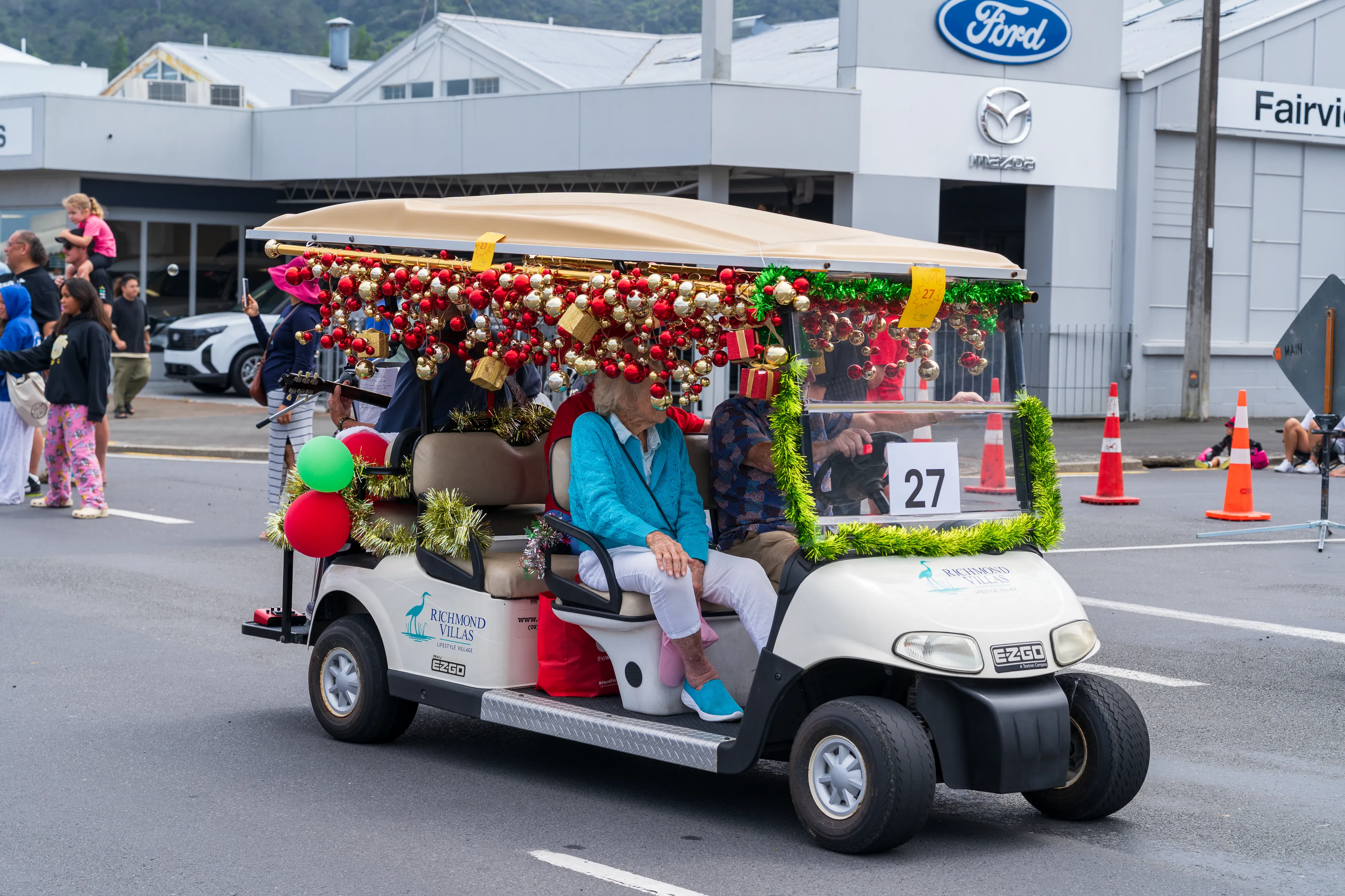 Nach dem Stopp im Besucherzentrum umrunden wir die Halbinsel einmal im Uhrzeigersinn. Los geht es in Thames, wo gerade die alljährliche Santa Parade stattfindet, bei der Vereine und Unternehmen aus der Gegend mit Wägen die Hauptstraße entlang ziehen - so wie man es bei uns von Faschings- oder Festumzügen kennt. Ein glücklicher Zufall, denn so bekommen wir hautnah mit, wie hier Weihnachten zelebriert wird - auch wenn ja noch etwas Zeit bis zum Fest ist.