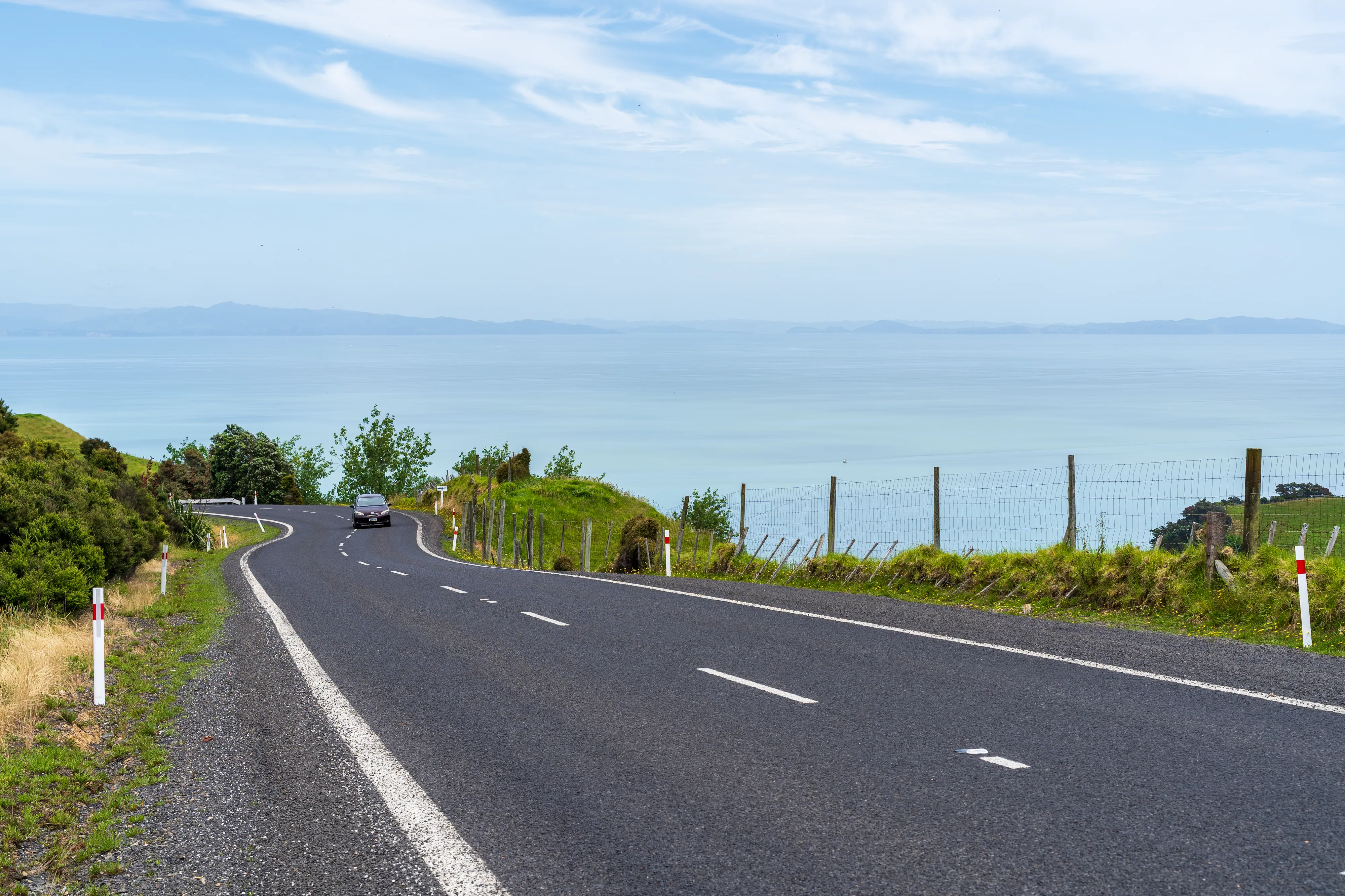 Morgens packen wir unsere Sachen und fahren mit Zug und Bus zum Flughafen, um dort unseren Mietwagen für die nächsten zwei Wochen abzuholen. Dabei teilen wir uns auf - Carla wartet am Bahnhof mit dem Gepäck und Florian fährt weiter zum Flughafen. Leider wird diesmal - zum ersten Mal überhaupt auf der Reise - der internationale Führerschein verlangt. Dieser befindet sich allerdings im Gepäck und ein Scan reicht dem Schalterpersonal nicht aus. Also macht sich Carla mit dem gesamten Gepäck auf den Weg zum Flughafen - nur damit das Dokument dann keines Blickes gewürdigt, geschweige denn aufgeschlagen wird … Fairerweise muss man sagen, dass sie auf ihrer Website schreiben, dass man einen internationalen Führerschein bei Abholung benötigt. Auch wenn sich nicht ganz ergibt wieso, halten sie deutsche EU-Führerscheine doch dutzende Male am Tag in Händen und wissen sicherlich genau auf welche Felder sie schauen müssen. So starten wir also mit einiger Verzögerung Richtung der Coromandel-Halbinsel im Nordosten der Nordinsel.