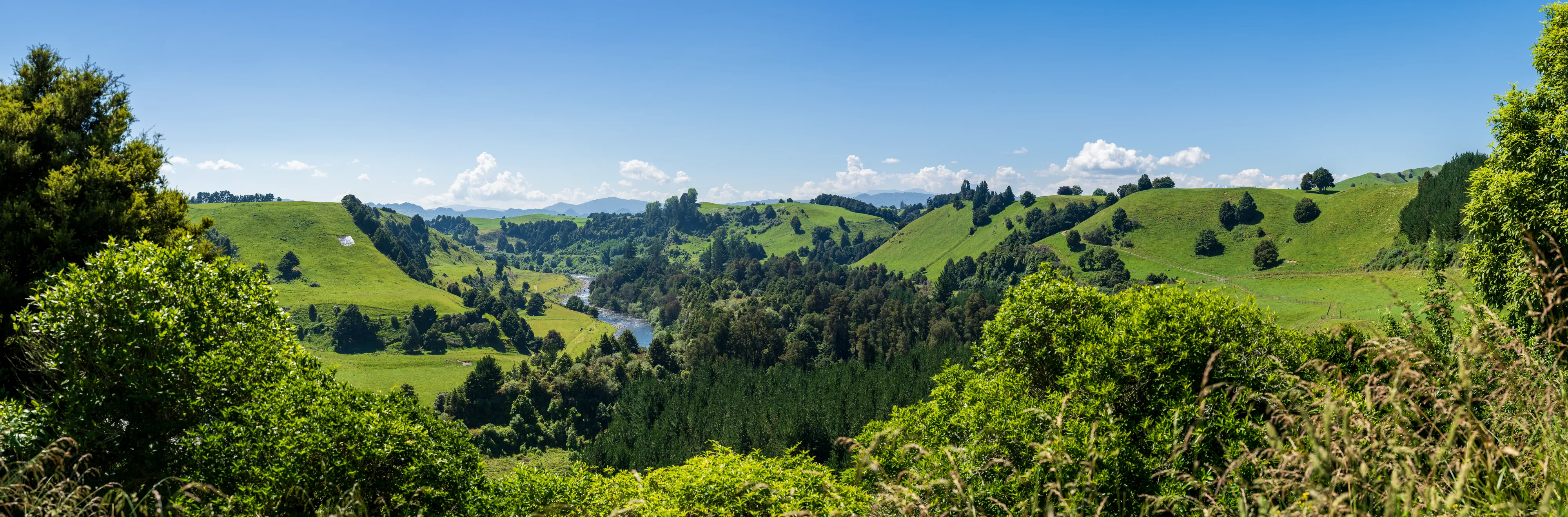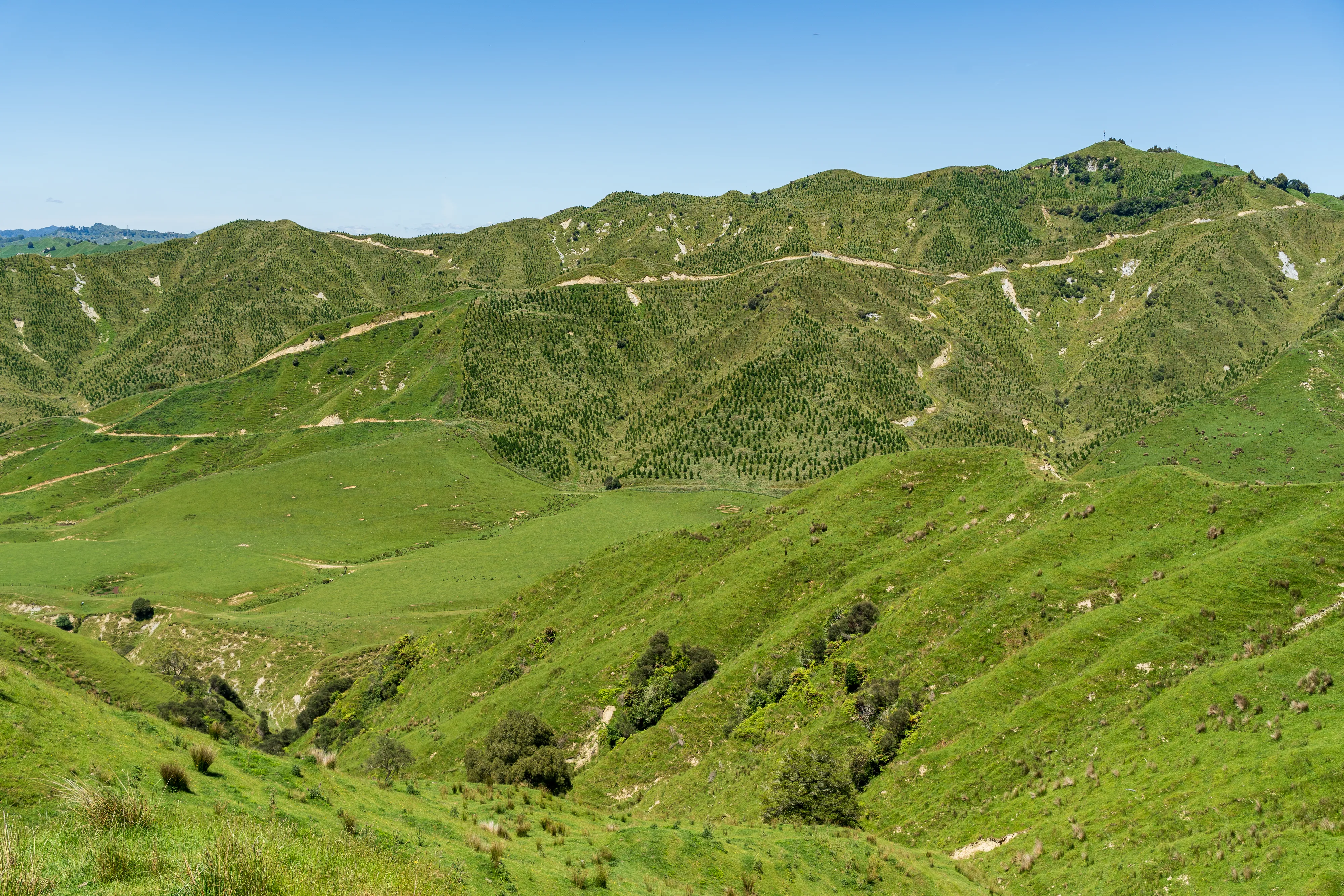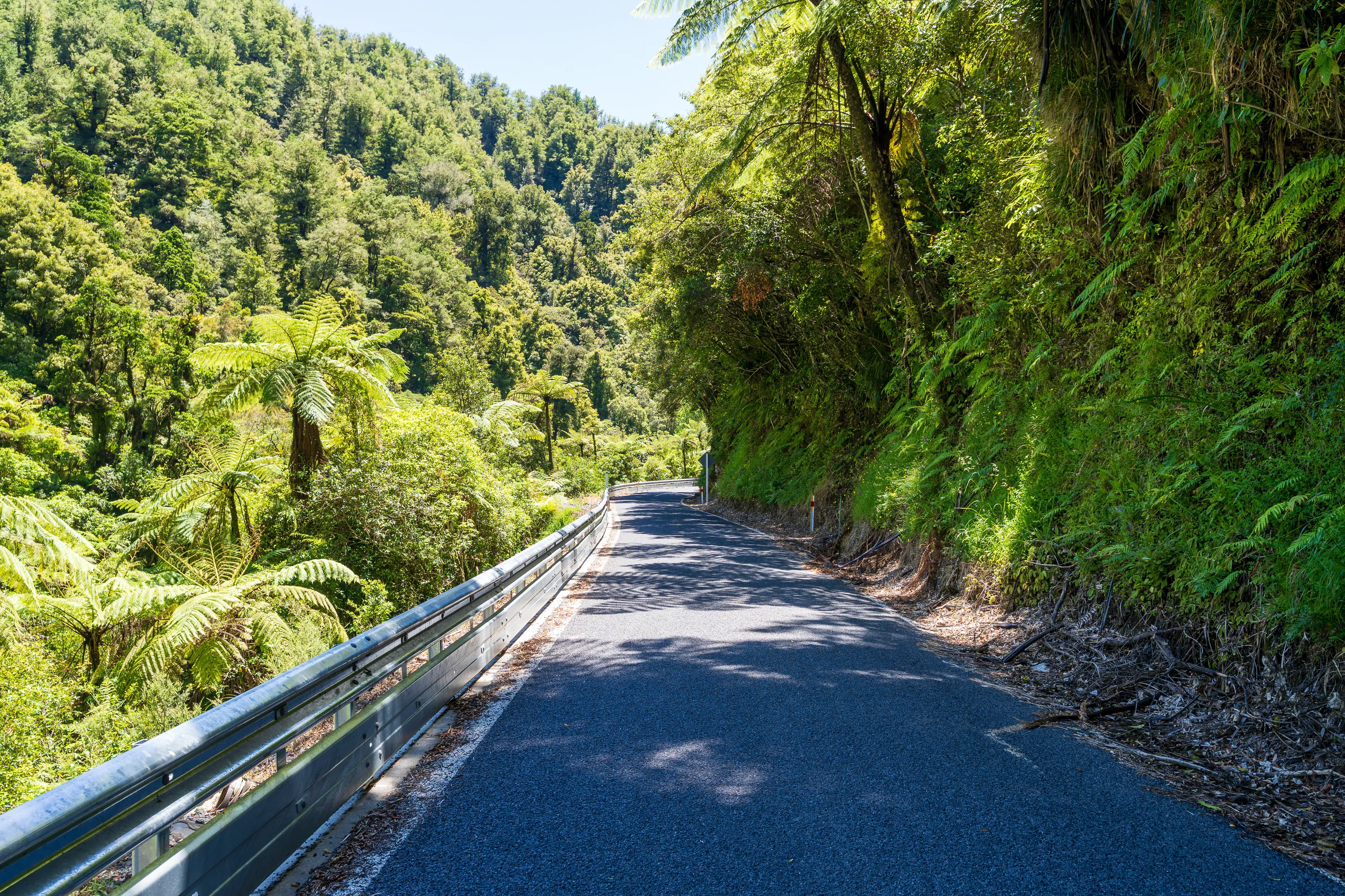 Wir starten von unserem Campingplatz im Tongariro National Park und fahren über den Forgotten World Highway in Richtung der südwestlichen Küste. Der Forgotten World Highway führt uns durch schöne Schluchten, Wälder und über sanfte, grüne Hügel auf denen unzählige Schafe weiden. Heute stellt diese Verbindungsstraße keine allzubefahrene Route mehr dar und so wirken die Dörfchen eben alle etwas “vergessen”.