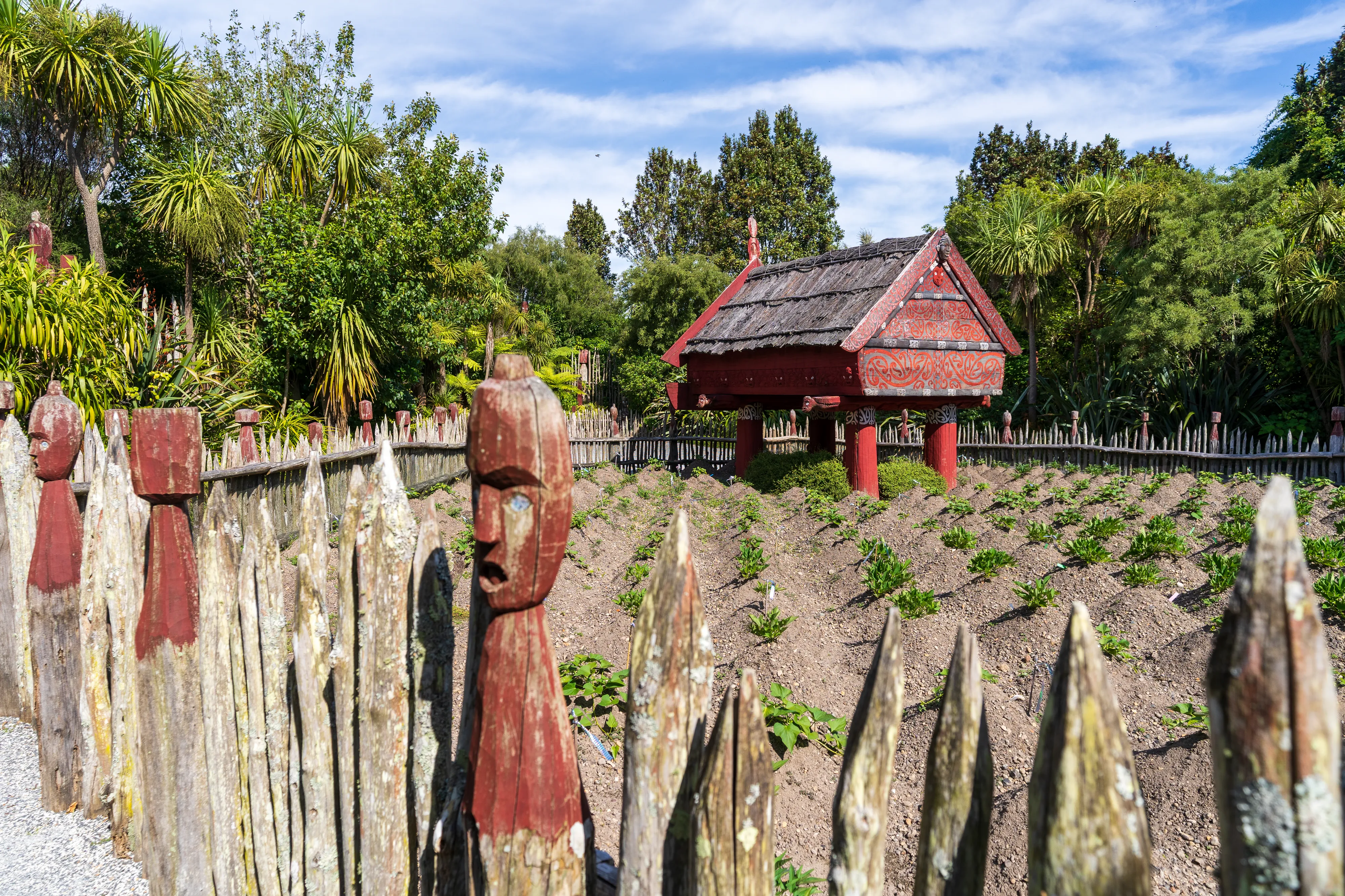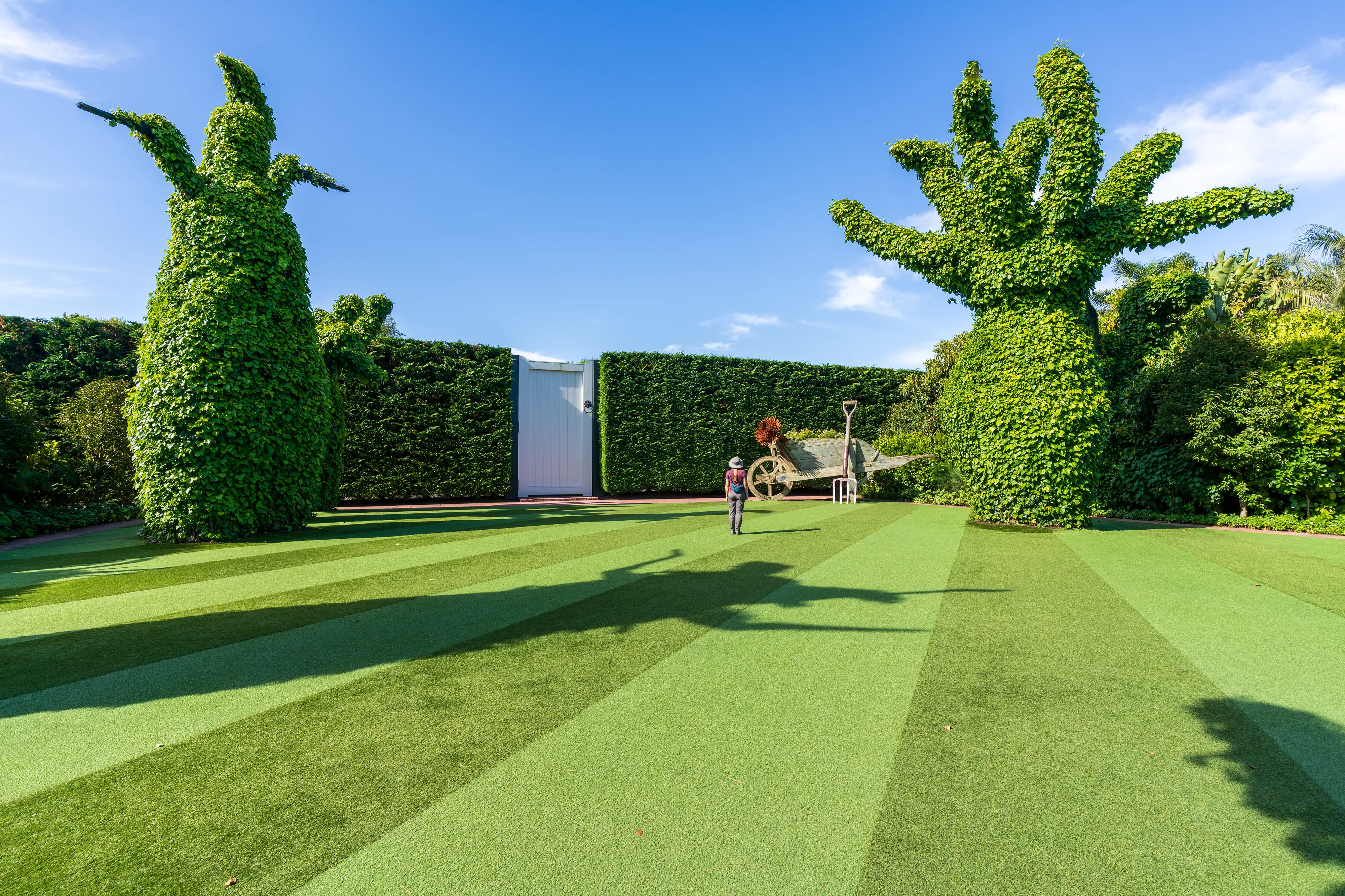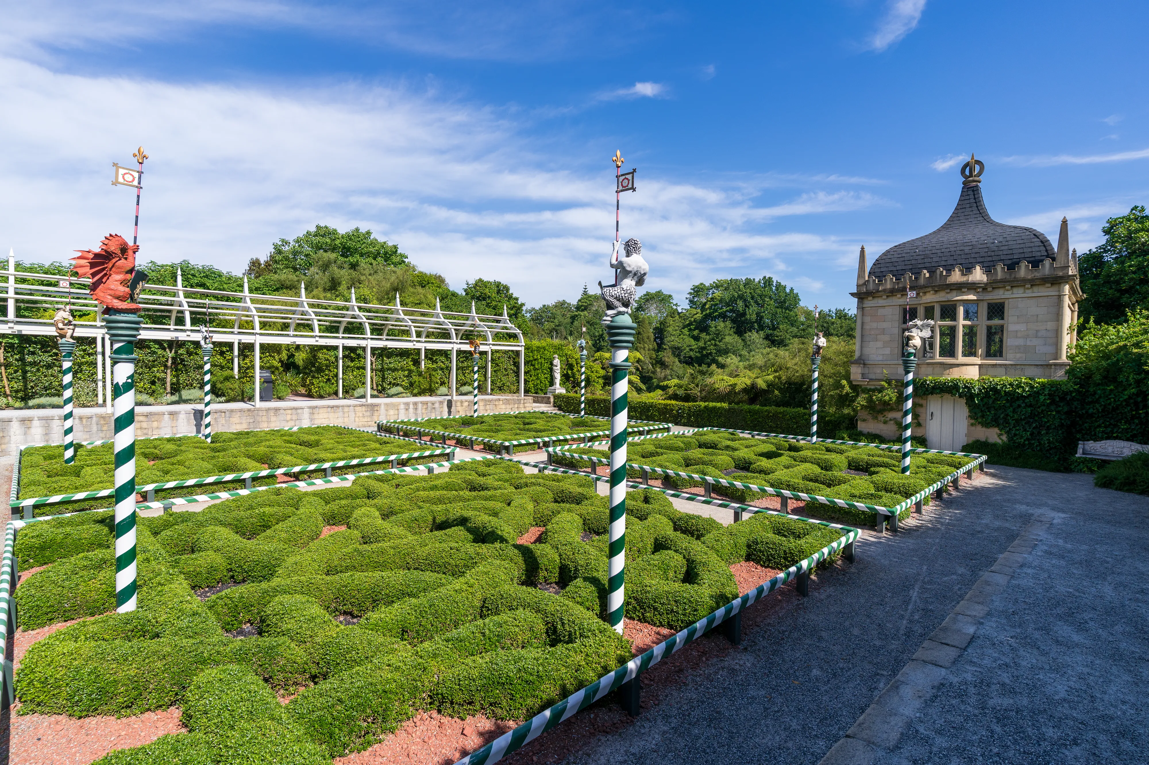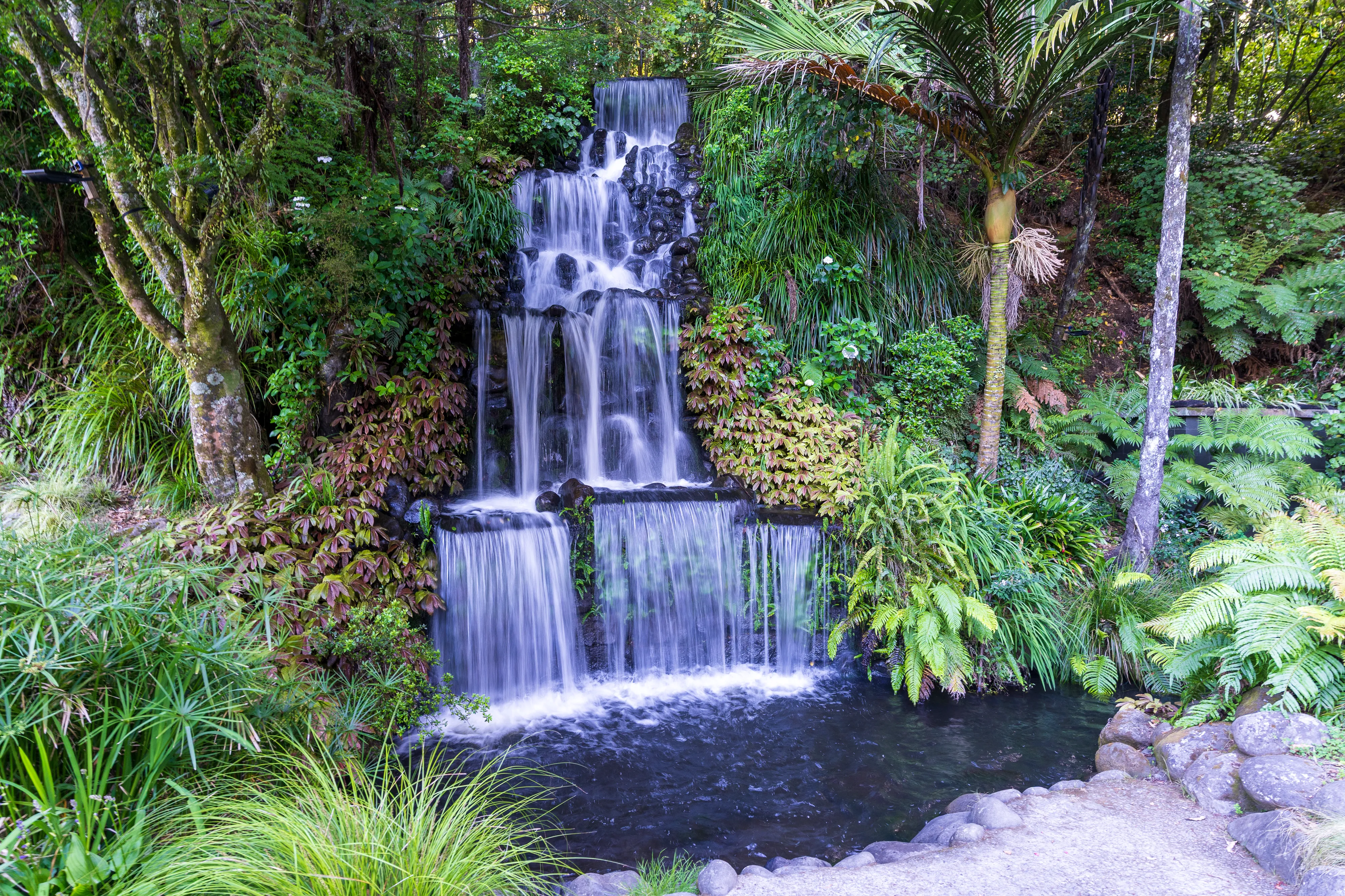 Zurück am Auto und einem Mittagessen in einer nahegelegenen Stadt fahren wir weiter nach Hamilton. Hamilton liegt recht zentral auf der Nordinsel und auf unserem Weg zurück Richtung Auckland. Mit knapp 200.000 Einwohnern ist sie Neuseelands viertgrößte Stadt. Hier befinden sich die Hamilton Gardens, ein großer botanischer Park, dessen Besonderheit die “Enclosed Gardens” sind. Die Enclosed Gardens sind kleinere, durch Mauern oder Hecken abgetrennte, Gärten, die unterschiedlichen Themen gewidmet sind. Die Gärten versuchen über 4000 Jahre Landschaftsgestaltung aus den verschiedensten Teilen der Welt abzubilden: China, Japan, Indien, Ägypten, mitteleuropäische Renaissancegärten. Weiterhin gibt es “Fantasiegärten” wie den “Surrealistengarten”. Eine tolle Idee, die mit einer Vielzahl unterschiedlicher Gestaltungsmöglichkeiten spielt und einem gleichzeitig die jeweilige Kultur und Epoche näher bringt. Haben wir ja nun - alleine auf dieser Reise - schon einige Gärten besucht, so haben wir einen solchen bisher noch nie erlebt.