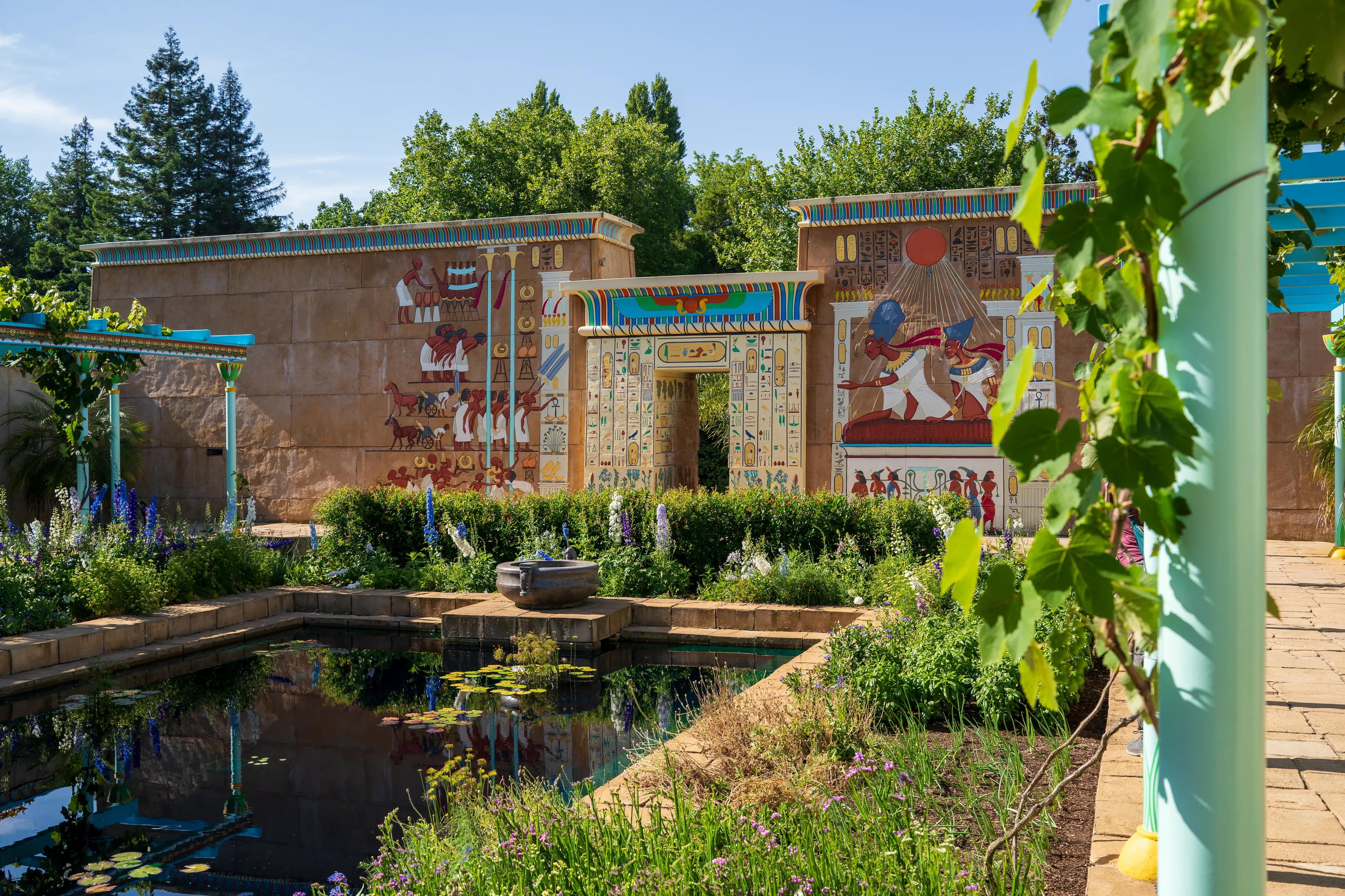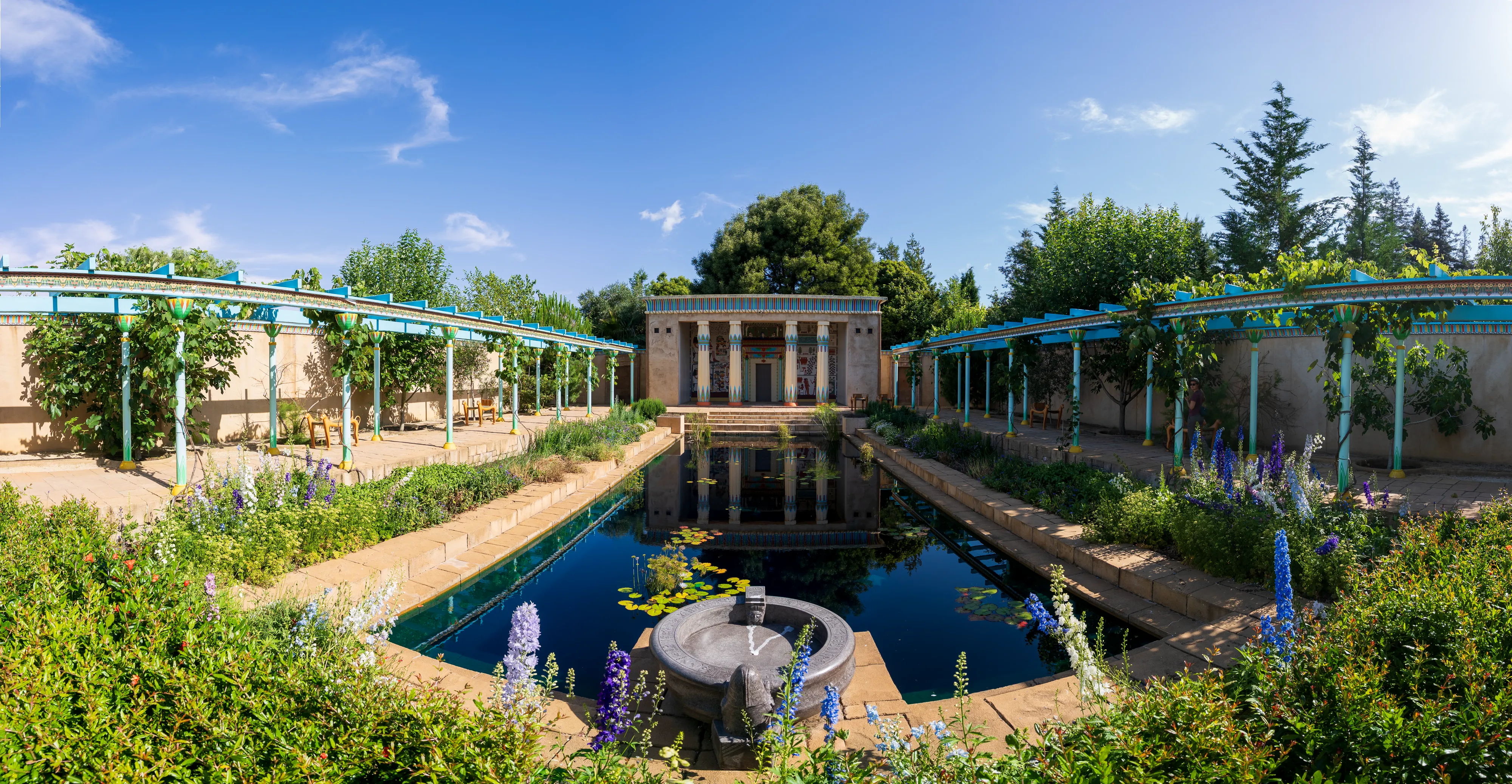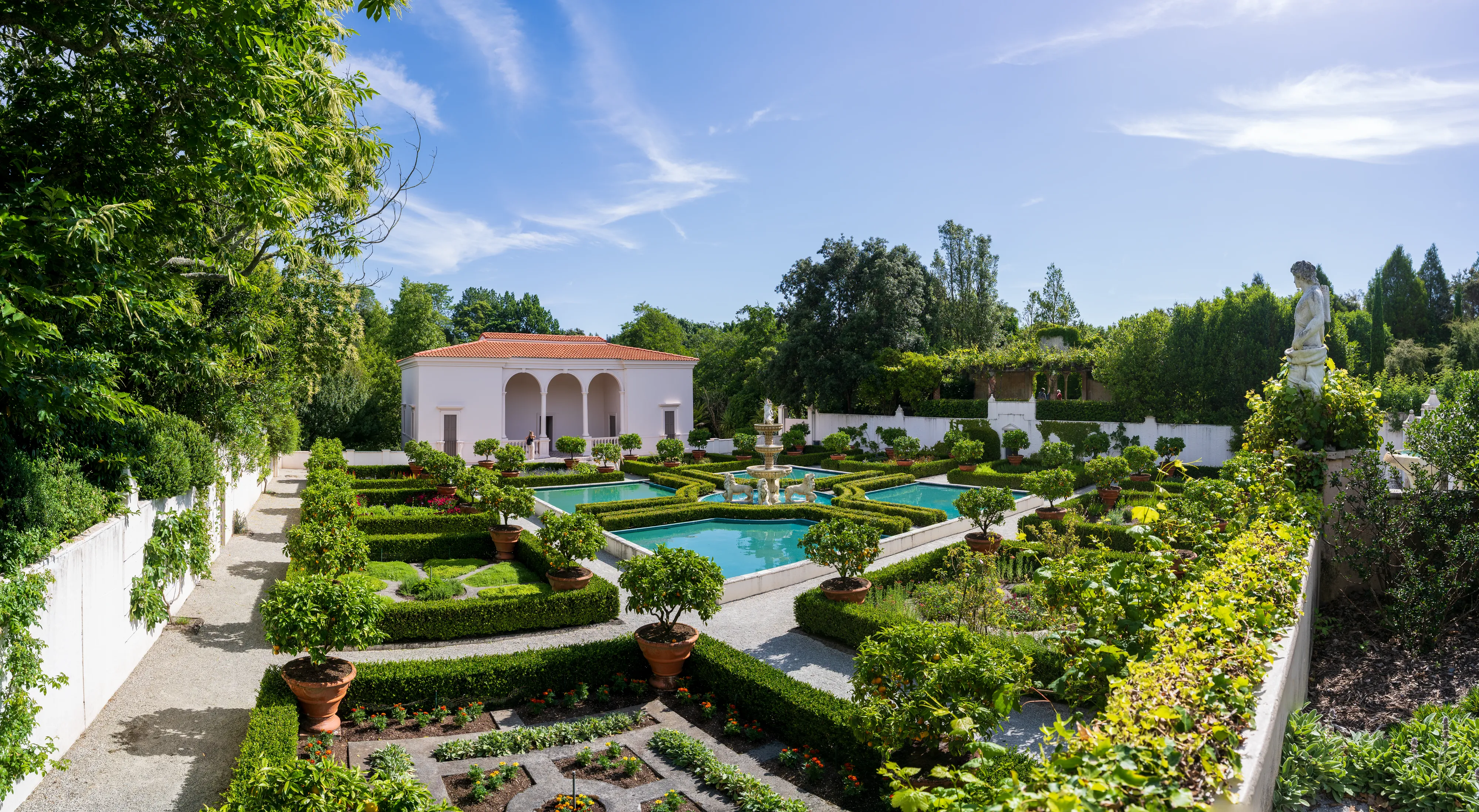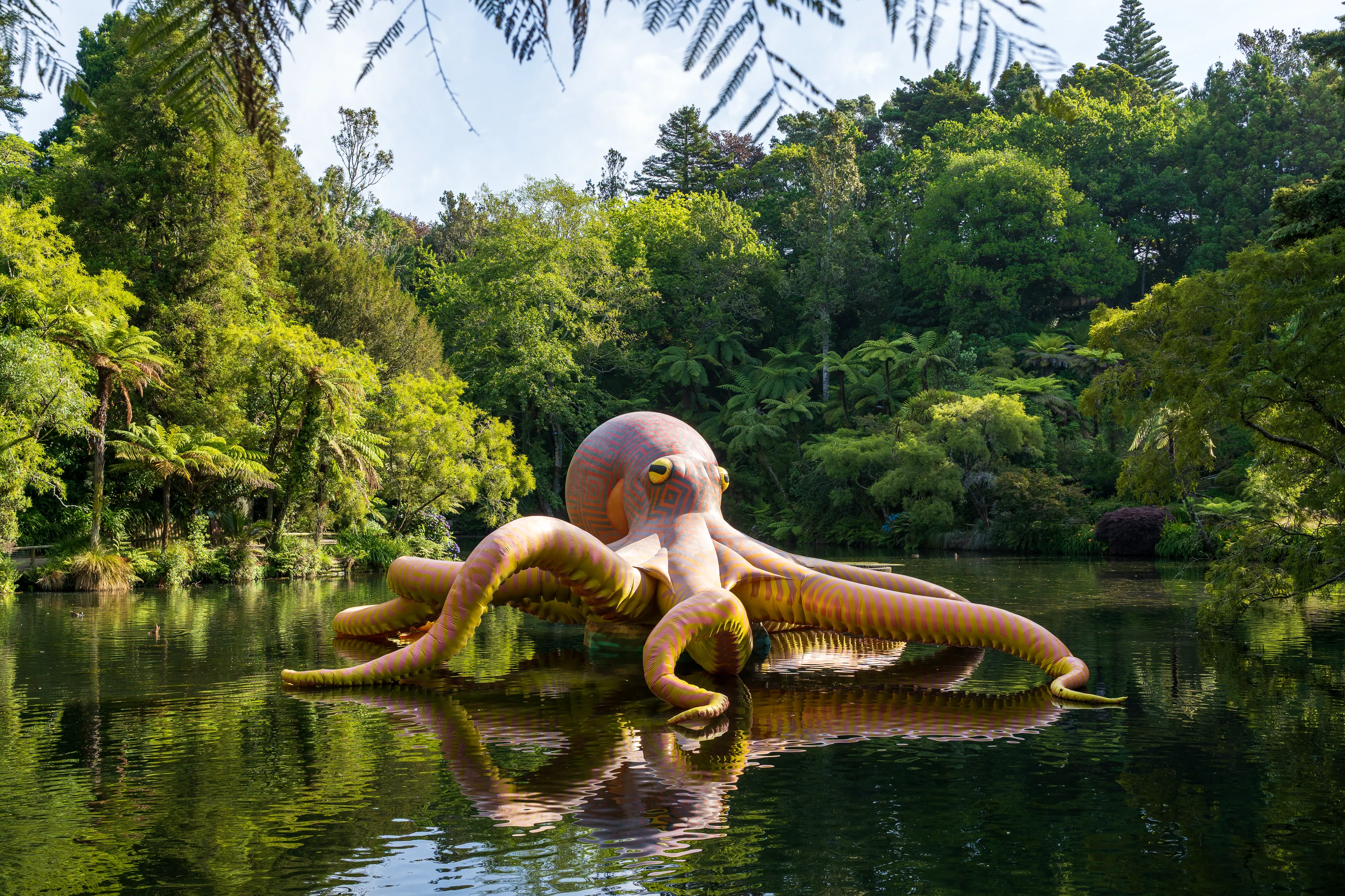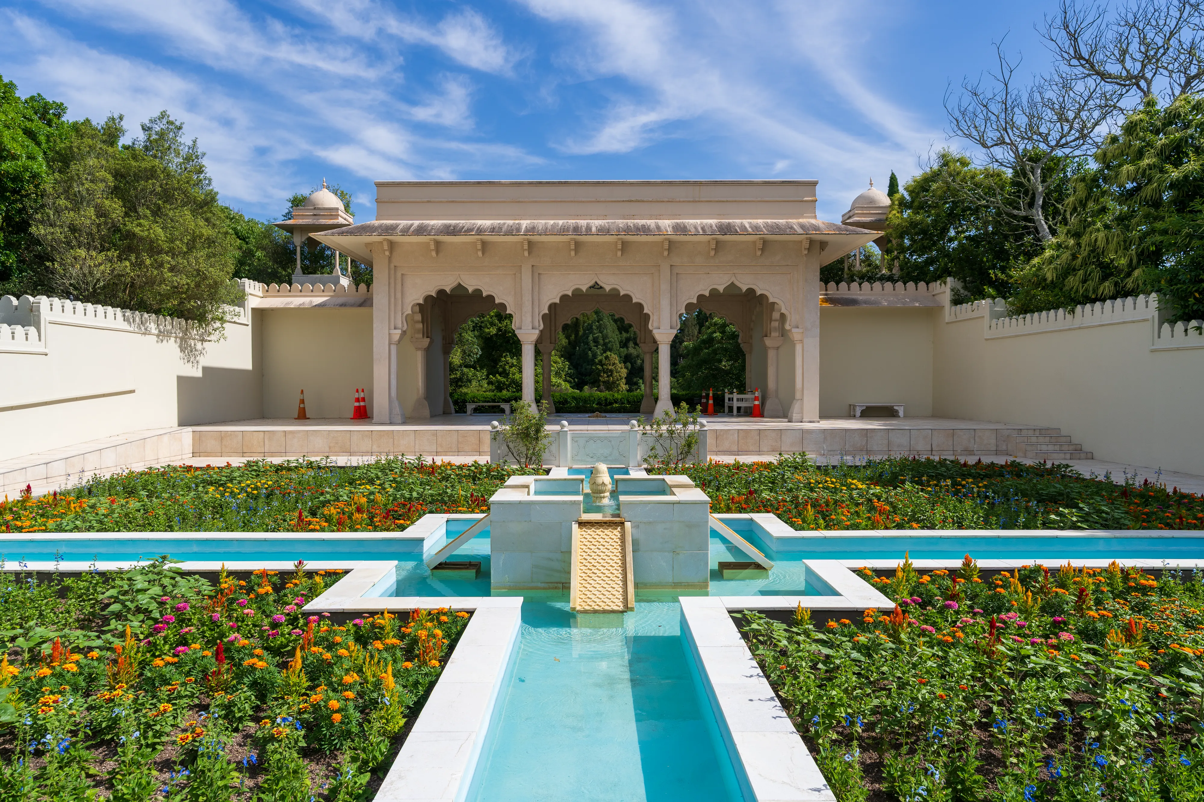 Zurück am Auto und einem Mittagessen in einer nahegelegenen Stadt fahren wir weiter nach Hamilton. Hamilton liegt recht zentral auf der Nordinsel und auf unserem Weg zurück Richtung Auckland. Mit knapp 200.000 Einwohnern ist sie Neuseelands viertgrößte Stadt. Hier befinden sich die Hamilton Gardens, ein großer botanischer Park, dessen Besonderheit die “Enclosed Gardens” sind. Die Enclosed Gardens sind kleinere, durch Mauern oder Hecken abgetrennte, Gärten, die unterschiedlichen Themen gewidmet sind. Die Gärten versuchen über 4000 Jahre Landschaftsgestaltung aus den verschiedensten Teilen der Welt abzubilden: China, Japan, Indien, Ägypten, mitteleuropäische Renaissancegärten. Weiterhin gibt es “Fantasiegärten” wie den “Surrealistengarten”. Eine tolle Idee, die mit einer Vielzahl unterschiedlicher Gestaltungsmöglichkeiten spielt und einem gleichzeitig die jeweilige Kultur und Epoche näher bringt. Haben wir ja nun - alleine auf dieser Reise - schon einige Gärten besucht, so haben wir einen solchen bisher noch nie erlebt.