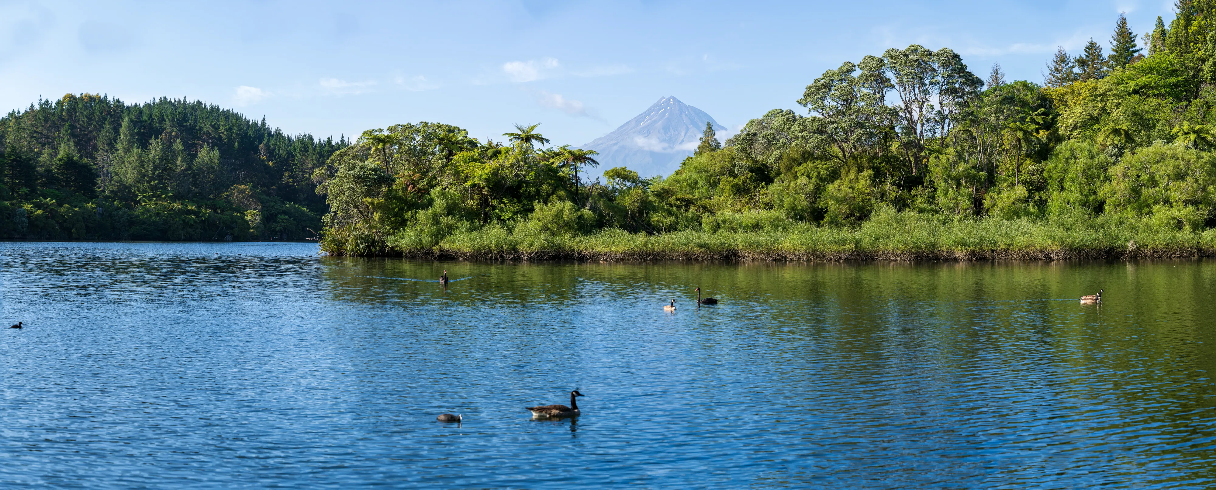 Am nächsten Morgen brechen wir früh auf, da wir für den Mittag Tickets für die Waitomo Glowworm Caves haben. Vorher möchten wir aber noch zu einem Aussichtspunkt am Lake Mangamahoe, von wo aus man einen schönen Blick auf den - heute wolkenfreien - Mt Taranaki hat.