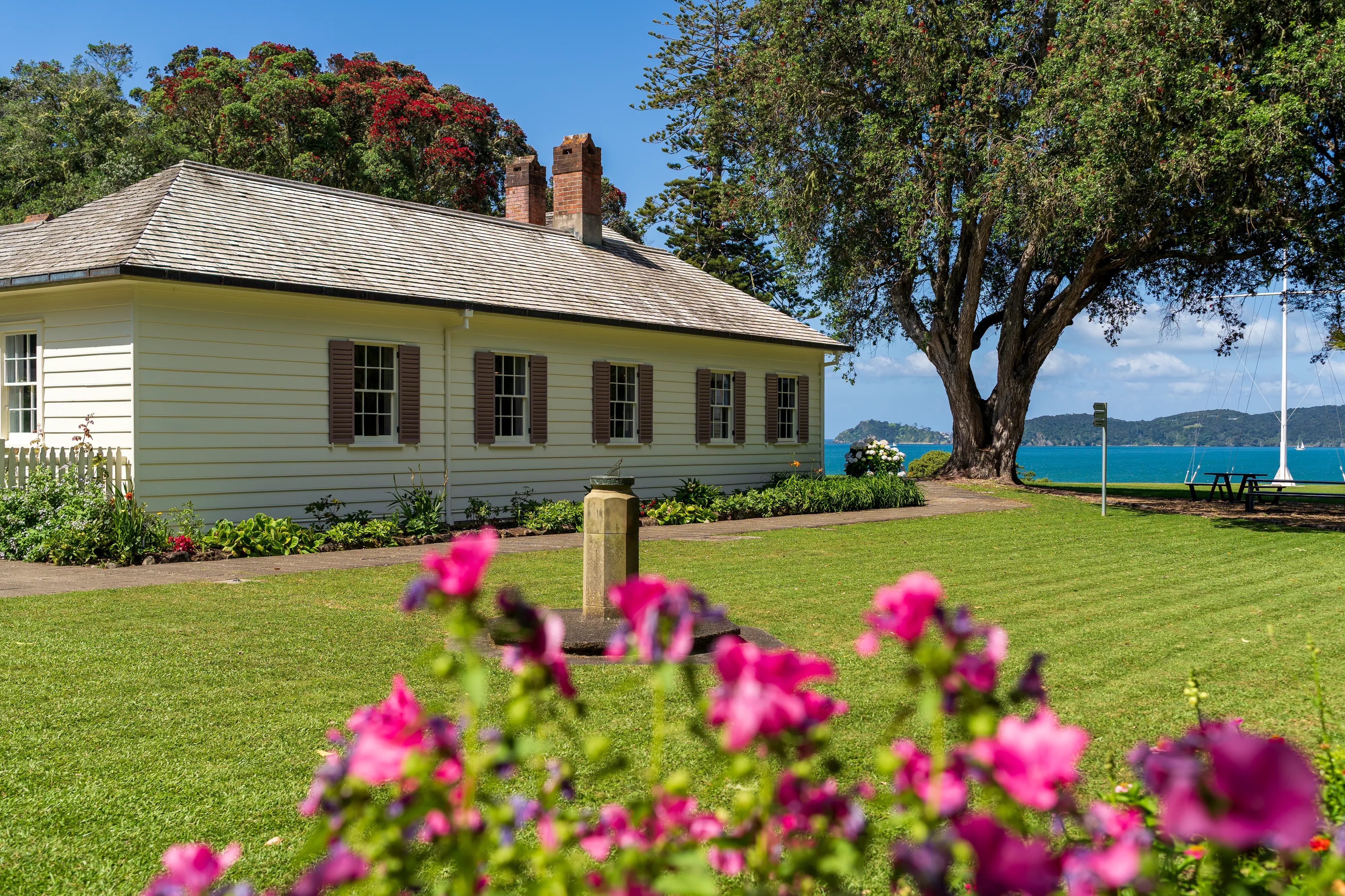 Wir fahren zu den geschichtsträchtigen Waitangi Treaty Grounds, wo 1840 die Verträge von Waitangi unterschrieben wurden. Die Verträge sollten die Rechte der maorischen Bevölkerung sicherstellen bzw. die Stellung Neuseelands im Britischen Empire als Kolonie festhalten. Hierfür sollten die Maorihäuptlinge sich der britischen Krone unterordnen, im Gegenzug aber auch durch diese (vor der Willkür und Landnahme durch die britischen Siedler) geschützt werden. Allerdings wich die Maori-Version des Vertrags an entscheidenden Stellen erheblich von der englischen Fassung ab, auch weil in dieser Konzepte verwendet werden, die den Maori unbekannt waren. Diese Stellen führten entsprechend zu sehr unterschiedlichen Auslegungen des Vertrages auf Seite der Krone und der Maori. Ob diese absichtlich dergestalt übersetzt wurden oder ob es sich einfach um mangelnde (Sprach-)kenntnis handelte, ist dabei nicht geklärt. Fest steht jedoch, dass die Häuptlinge eine “bessere” Übersetzung, die den implizierten Souveränitätsverlust klargemacht hätte, vermutlich niemals unterschrieben hätten. Weiterhin hat auch nur ein Teil der Clanführer überhaupt die eine oder andere Version des Vertrages unterzeichnet - solche Feinheiten scherten die britische Krone und die Siedler jedoch nicht sonderlich bei der Durchsetzung ihrer Interessen. Und so kann man rückblickend sicher sagen, dass die Maori hier über den Tisch gezogen wurden.