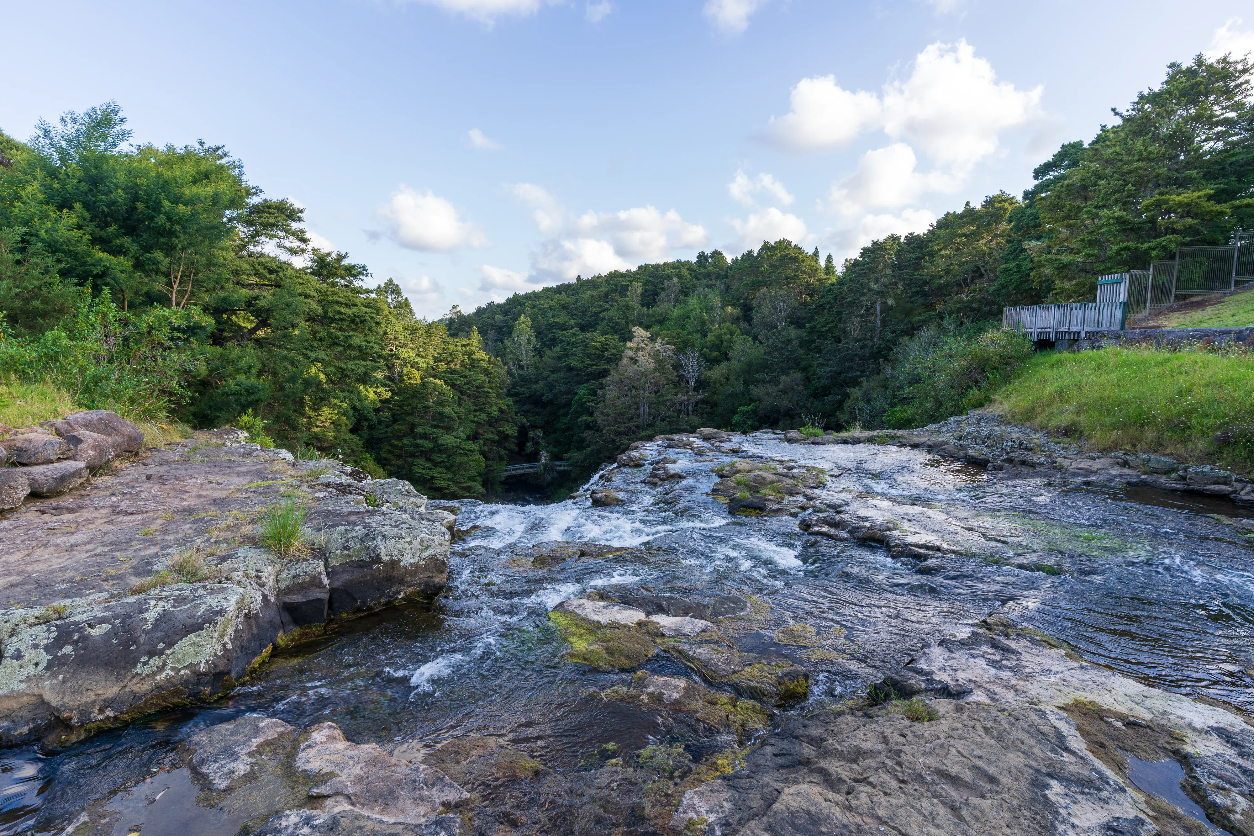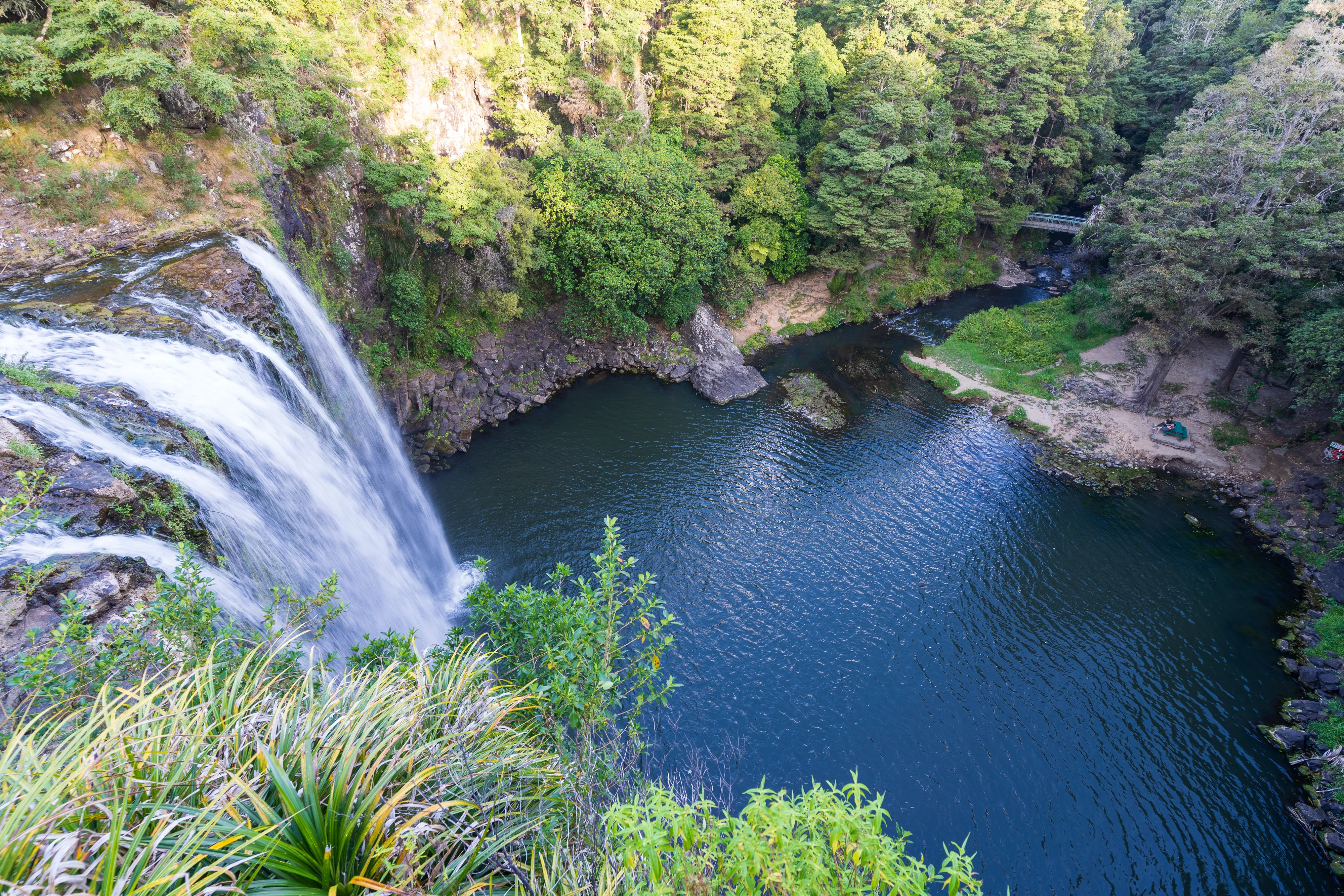 Von hier aus geht es wieder Richtung Süden entlang der Bay of Islands zu den beeindruckenden Whangārei Falls und schließlich bis zum Uretiti Campground.